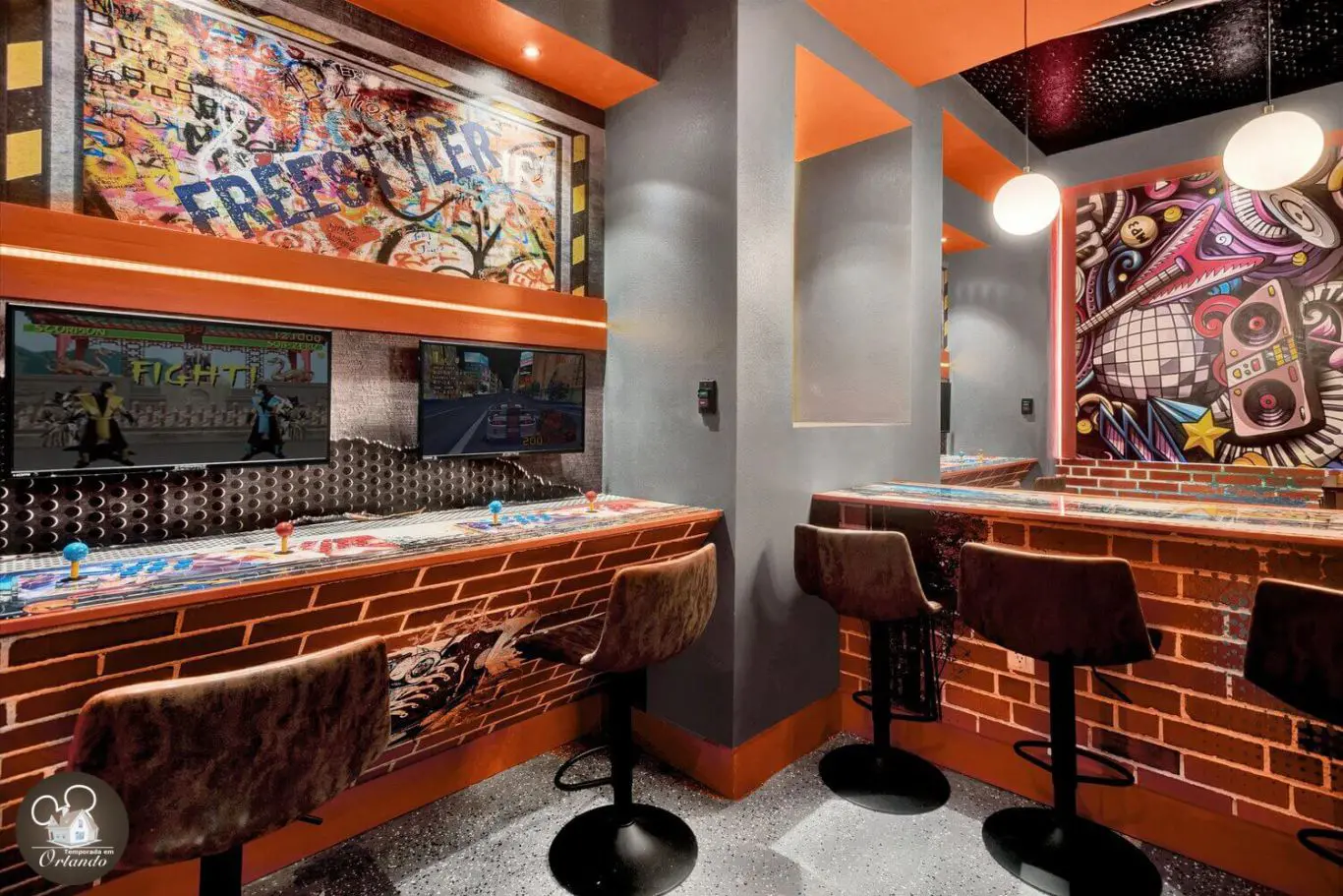 Esta casa foi absolutamente perfeita para nossa viagem em família à Disney. Todos cabem em seus próprios quartos e todos nós adoramos ter nossos próprios banheiros também. A sala de jogos era super legal e as crianças adoravam passear lá. Foi uma bênção ter todos nós reunidos na cozinha e realmente valorizar o tempo juntos. Ótimo lugar para se recuperar dos parques e da comunicação e comodidades foi, acho, a melhor parte da nossa estadia. Nossa única observação é que parte do carpete está um pouco manchada, mas nada maluco, provavelmente apenas pelo uso, e parte do balcão tinha algumas migalhas quando chegamos lá. Mas no geral, nos divertimos muito e reservaríamos 110% novamente!