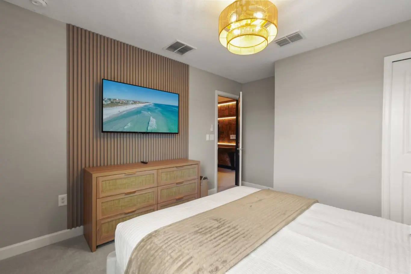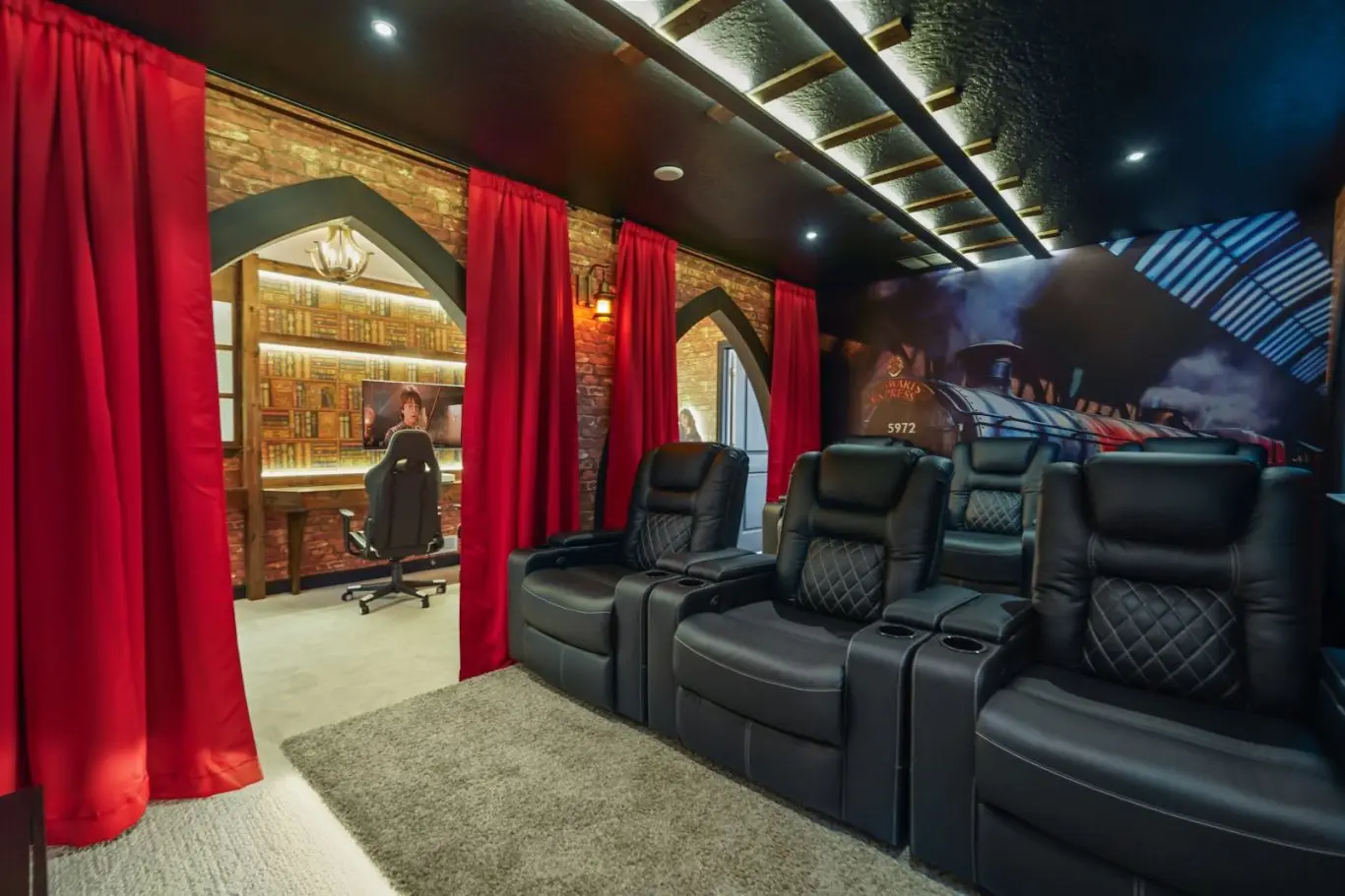 O salão de jogos garante diversão para todas as idades, e a sala de cinema oferece conforto máximo com poltronas especiais após um dia intenso de aventuras. Lá fora, a piscina privativa com jacuzzi e espreguiçadeiras é o convite perfeito para relaxar com total privacidade e explorar o clima da Flórida.
