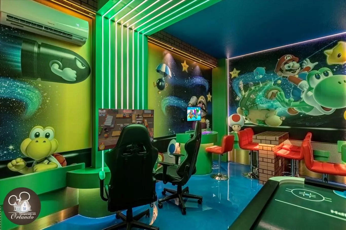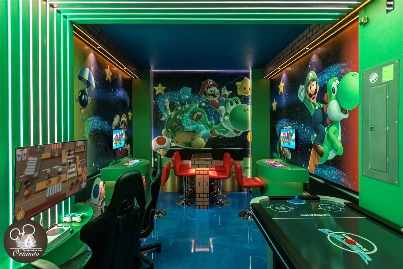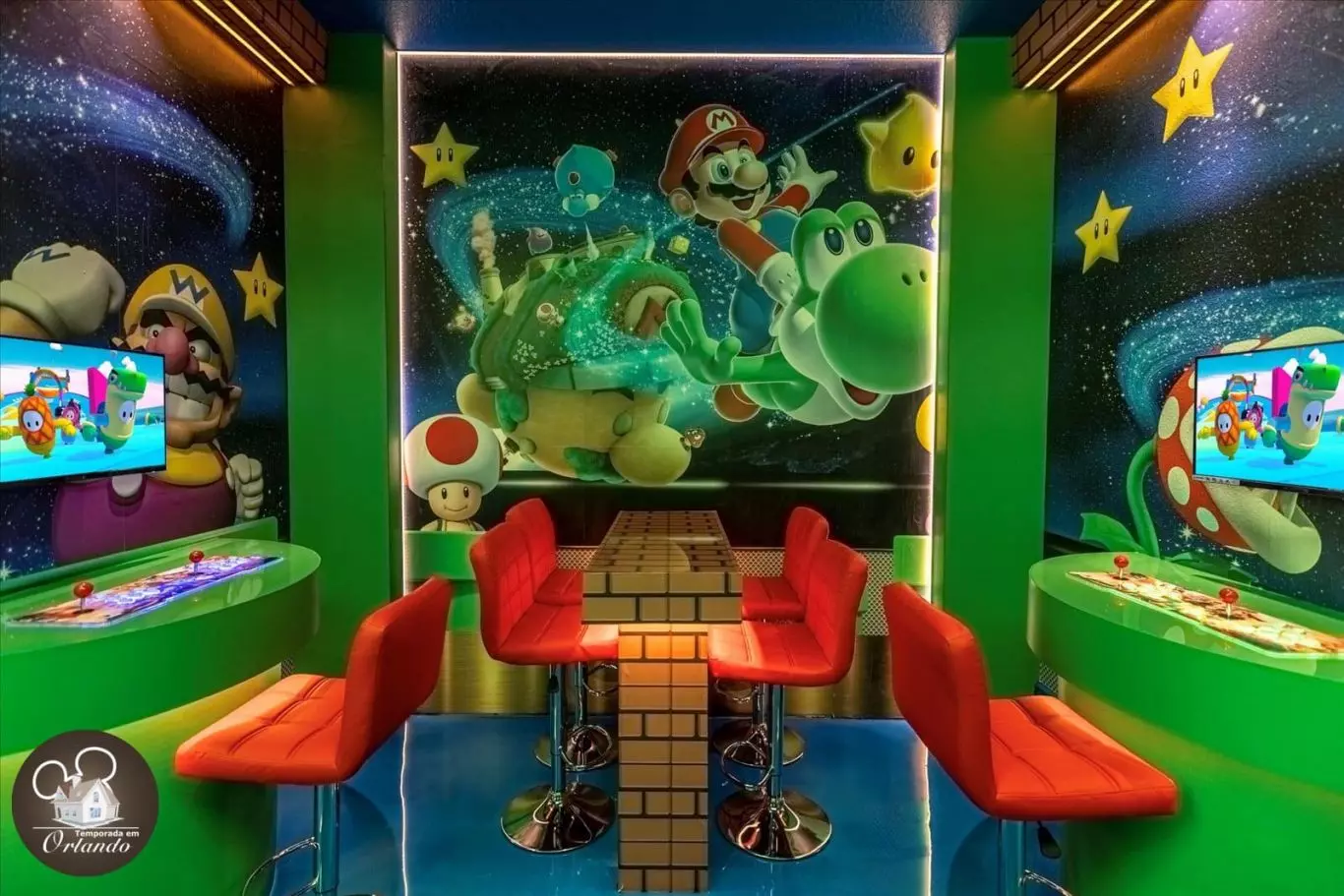 A casa da equipe era absolutamente perfeita para minha família. A casa está exatamente como na foto. Todos os quartos são espaçosos. A decoração e os quartos temáticos para crianças eram muito divertidos! Meu filho de 1 ano se apaixonou instantaneamente pelo quarto dos ratos Mickey. A sala de jogos mantinha as crianças entretidas. Também pagamos a taxa para aquecer a piscina e a piscina era agradável e quente em nosso primeiro dia lá. Obrigado por compartilhar sua acomodação conosco!