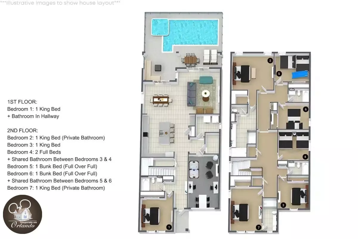A casa é muito mais do que esperávamos! As fotos não podem descrever o quão bonito e confortável é. Tanto espaço, muito limpo, os quartos temáticos são incríveis, meus filhos simplesmente os adoram. Como é inverno, não usamos a piscina, então não posso falar muito sobre isso. Só que a vista do quintal é tão agradável, tão tranquila. A localização, apesar de estar um pouco longe dos parques, foi perfeita para nós, pois amamos bairros tranquilos. A equipe foi muito receptiva e prestativa com nossos pedidos e perguntas. Não tivemos nenhum problema com a casa nem com a equipe! A estadia foi mais do que perfeita e esperamos voltar em breve!