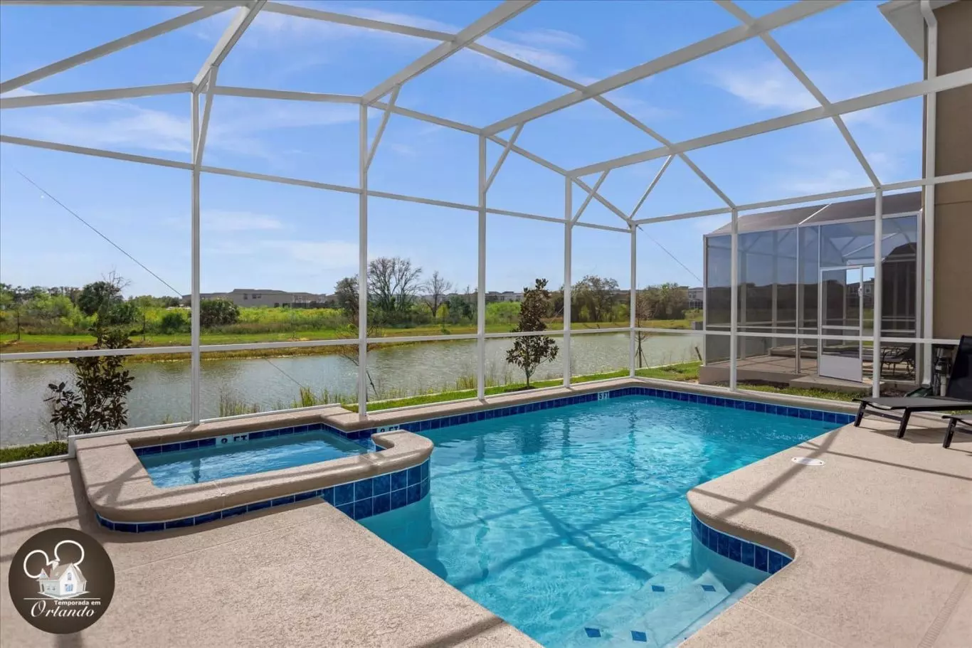 O salão de jogos oferece diversão garantida para todos os estilos, e a piscina privativa com jacuzzi, com vista para o lago, é o cenário ideal para relaxar depois de um dia nos parques.