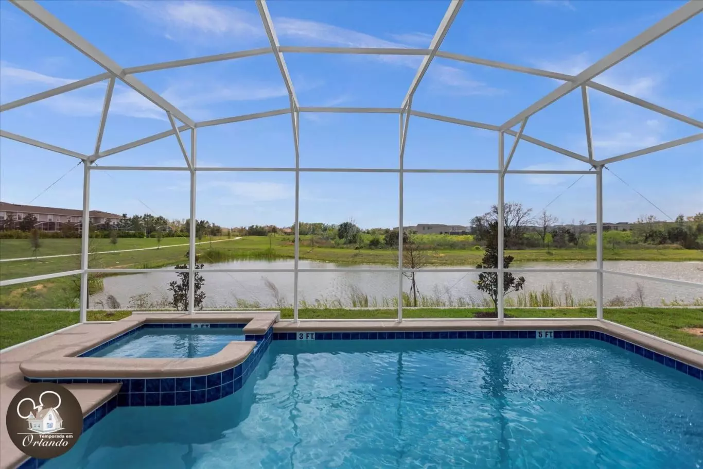 Mansão de alto padrão em Orlando com 7 quartos, piscina privativa com jacuzzi e vista para o lago • Acomoda até 20 pessoas, perto da Disney
