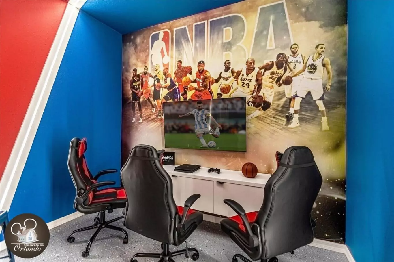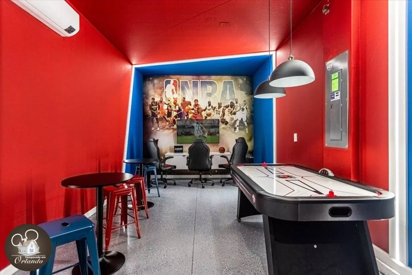Ficar na casa da equipe foi uma experiência fantástica. Foi ótimo voltar a um espaço tão bonito e espaçoso após um longo dia de emoções e atrações no Universal Studios e nos parques temáticos da Disney. A sala de jogos foi um "divisor de águas" para minha filha adolescente, que adorou a configuração desse espaço e a privacidade que ele proporcionava para ela ficar do lado de fora de seu quarto. Todos os quartos e banheiros estão bem conservados e bem mobiliados. A abertura da casa dá uma sensação tão "grandiosa"! O pouso do loft com a TV adicional/espaço para sentar é um bônus adicional para o quarto no andar de cima. Nossa família adora jogar cartas, por isso foi bom sentar no pátio, à noite, jogar jogos de cartas e relembrar a diversão do dia. Champion's Gate é uma bela comunidade, e é muito fácil chegar a mercearias, restaurantes, etc., assim que você sair do condomínio fechado. Aproveitamos ao máximo a academia do Oasis Club. A casa da equipe é altamente recomendada.