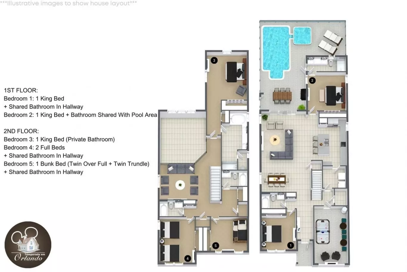 Você merece uma estadia incrível em Orlando. Esta casa de alto padrão, recém-construída e pronta para receber grupos grandes, famílias ou amigos, oferece luxo, conforto e ótima localização, a poucos minutos dos parques da Disney.