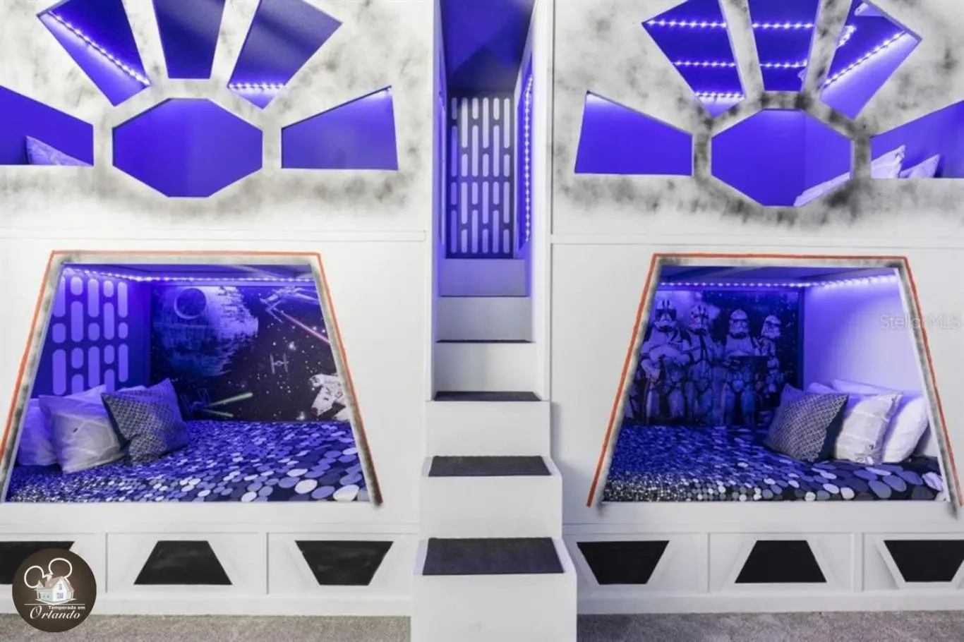 As crianças adoraram o quarto temático de Star Wars e a sala de jogos foi ótima para as noites quando voltamos da Disney.