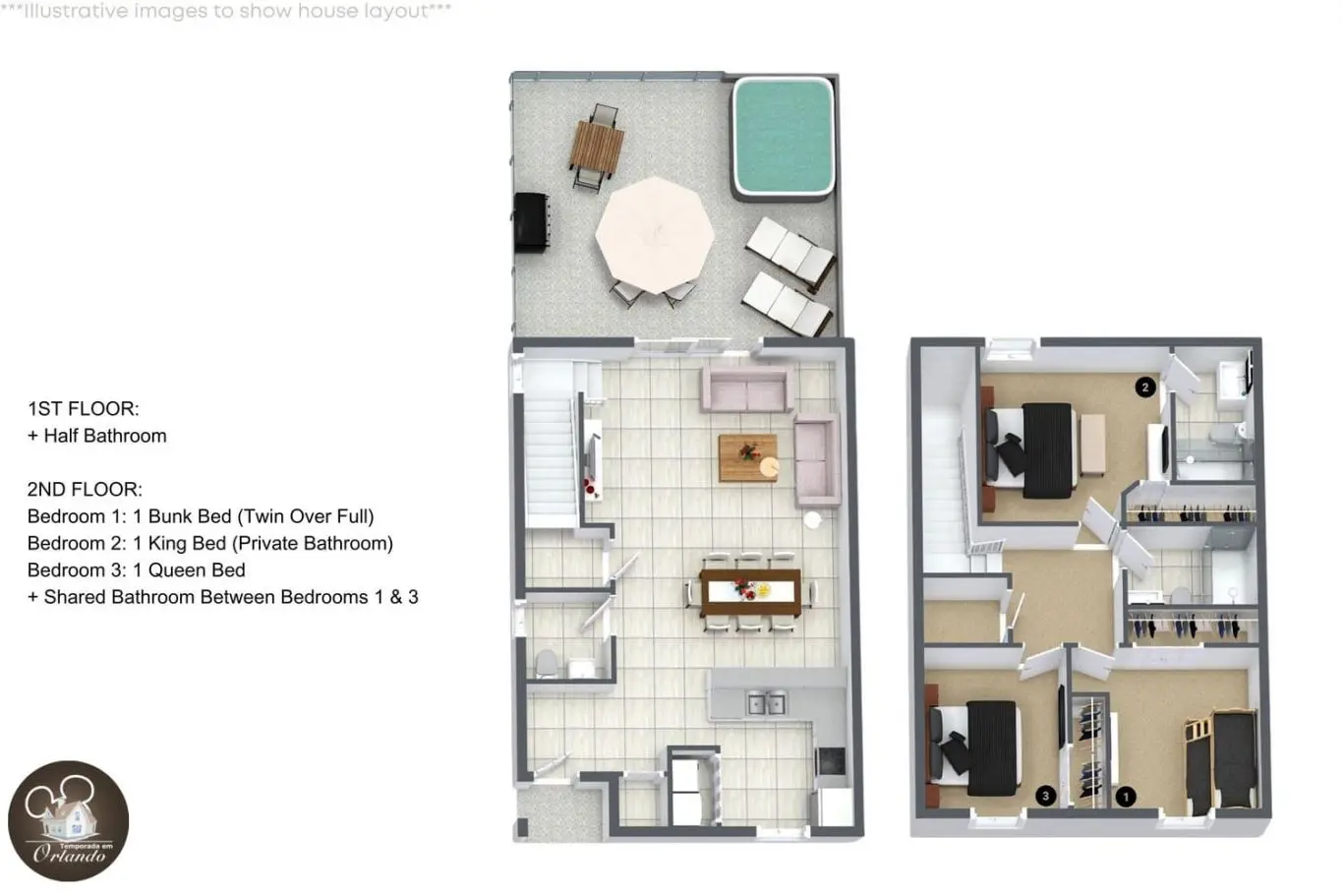Esta casa para temporada em Orlando é perfeita para quem deseja conforto, praticidade e uma jacuzzi exclusiva para relaxar após os parques. Localizada no Encantada Resort, a poucos minutos da Disney, a casa oferece uma estadia completa para famílias e grupos de até sete pessoas.