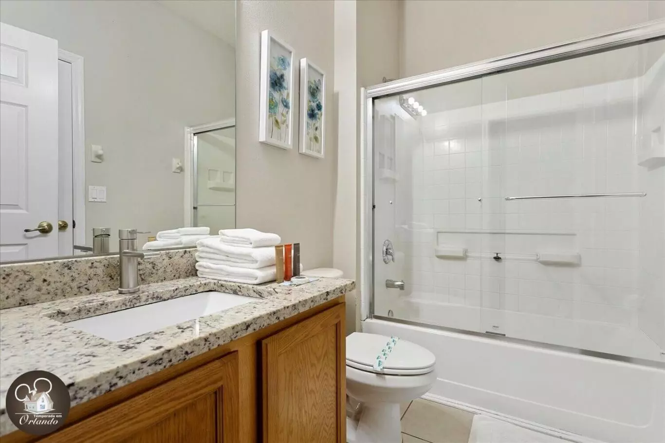 Ótimo lugar para ficar! Tem muitas toalhas e toalhas de mão, mas não fornece roupas para lavar. Toneladas de espaço. O aquecimento da piscina funcionou muito bem. A piscina do resort era boa. A equipe do restaurante do resort também é agradável. Ótima comunicação com a equipe, que foi rápida para responder. Centralmente localizado, com todos os parques da Disney e Sea World por perto.