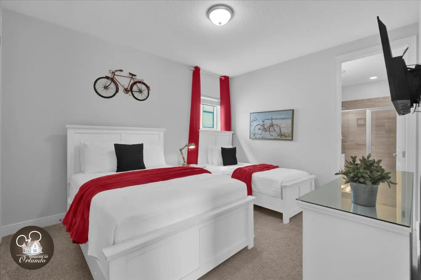 • Quarto 3: 1 Cama Casal e 1 Cama Solteiro (Suíte).