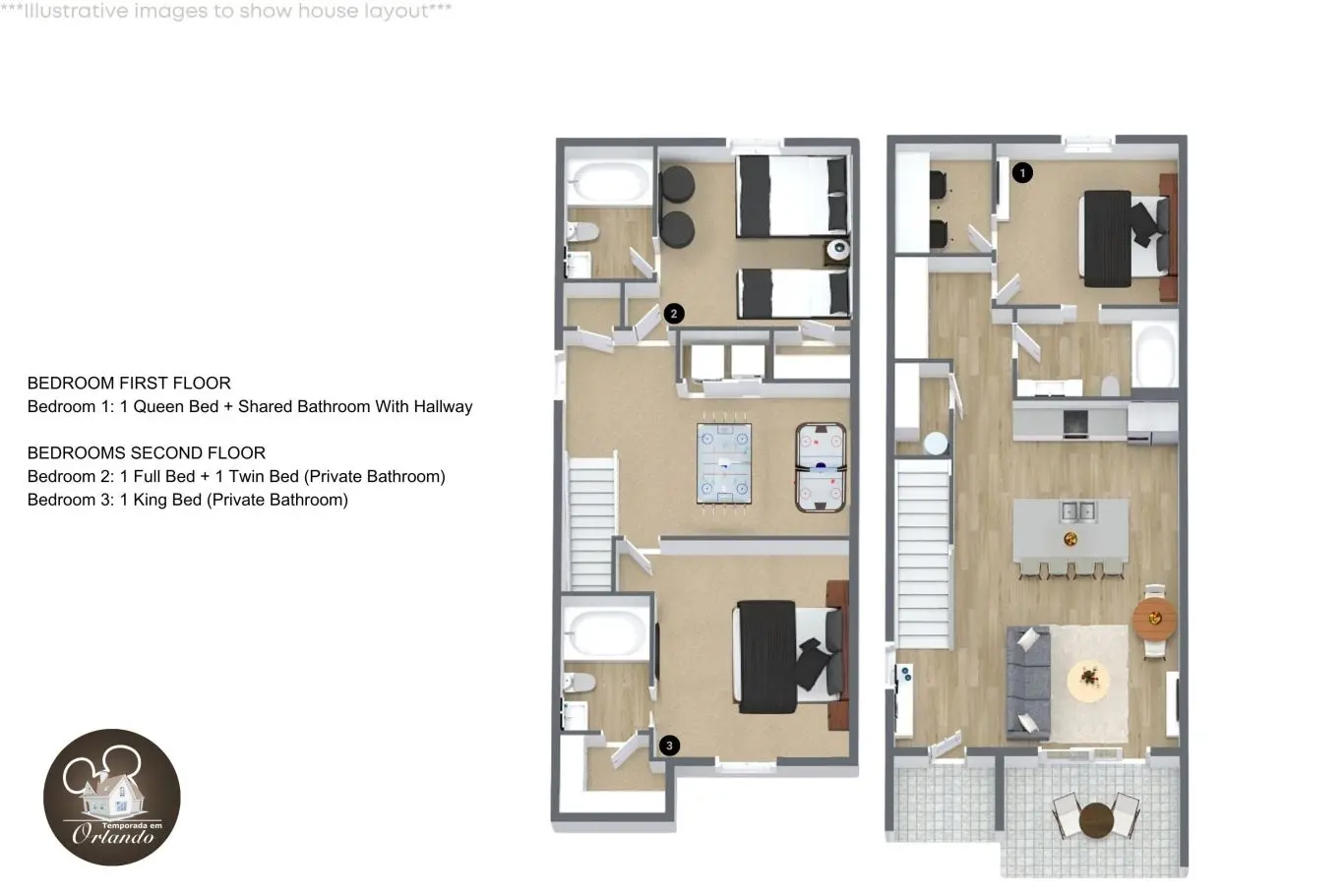 Essa casa moderna é ideal para quem deseja unir conforto, localização estratégica e praticidade durante a viagem a Orlando. Com três suítes bem distribuídas, decoração encantadora e sala de descanso exclusiva, ela oferece tudo que sua família precisa para férias inesquecíveis.