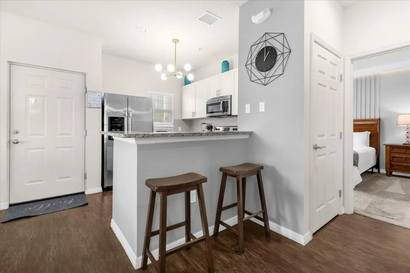 Ótima localização para dirigir até a Disney! Pequena cozinha e área de estar, bons quartos. A geladeira vazou, mas espero que a equipe conserte para os próximos hóspedes. Estacionamento fácil, a entrada da casa fica a uma curta caminhada pela calçada do estacionamento.