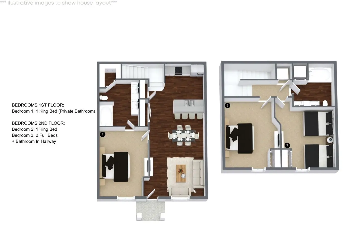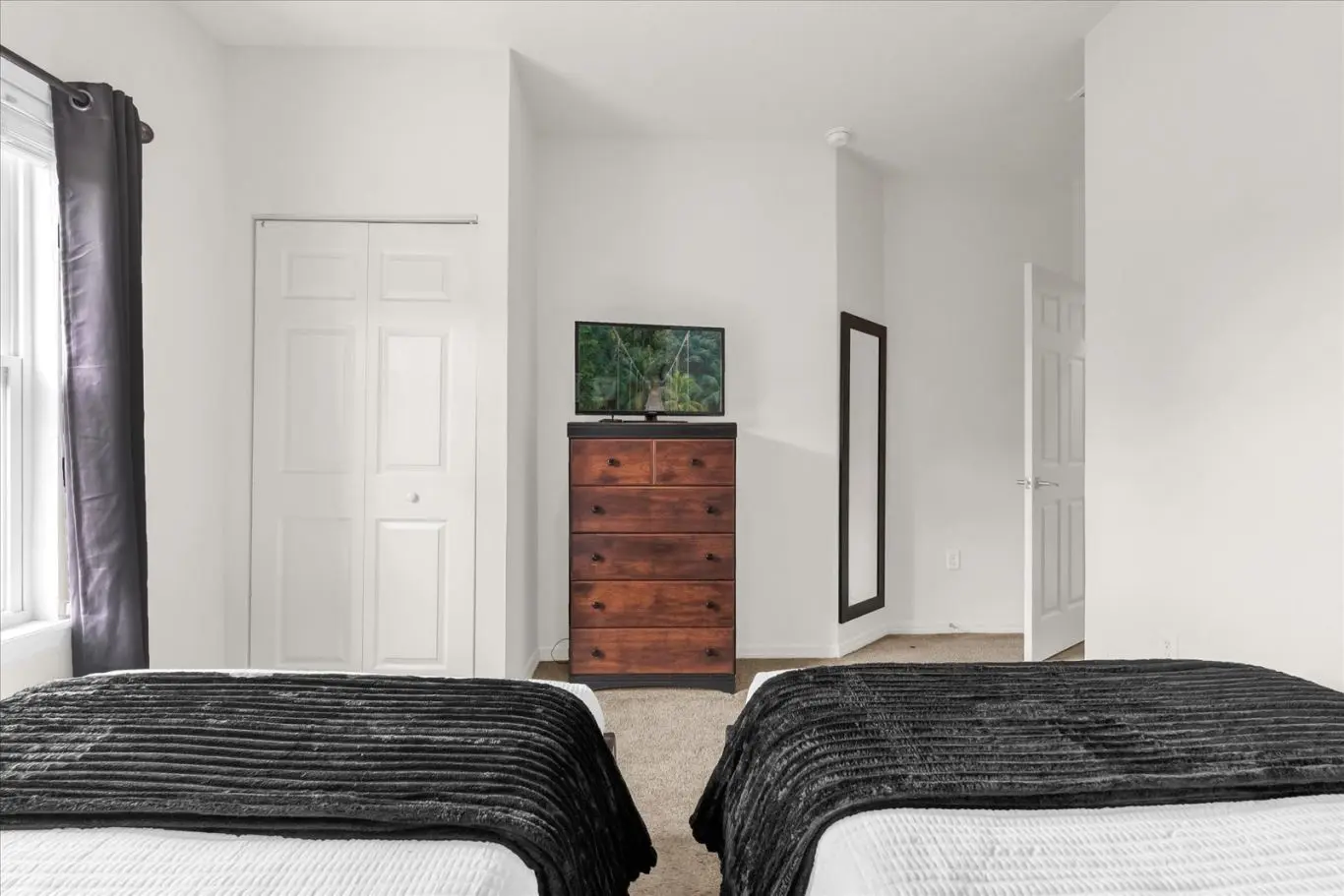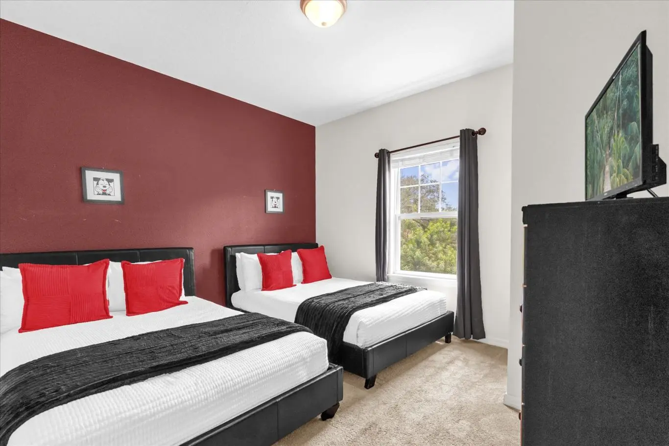 A casa dispõe de 3 quartos com TVs individuais, sendo: