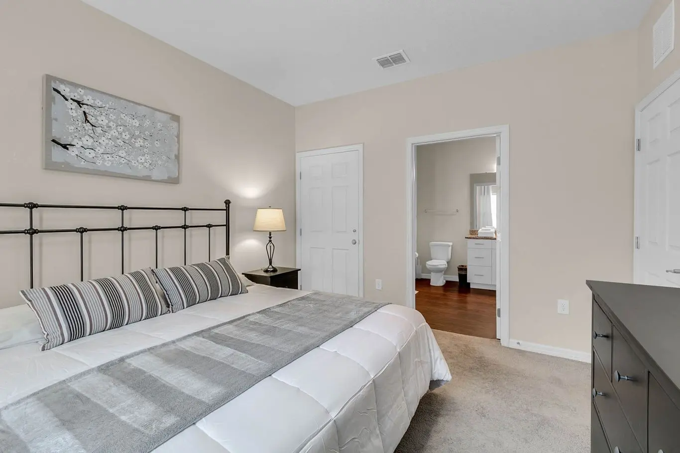 As principais características incluem: Muito limpo, ótima localização, perto de bons restaurantes, fácil acesso às principais rodovias, toalhas e cobertores adequados, camas confortáveis, fácil acesso, propriedade fechada, TV em todos os quartos com streaming, bom suprimento de utensílios de cozinha e pratos, bom AC e aquecimento