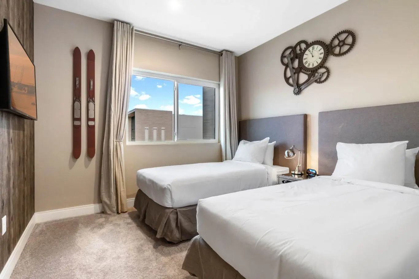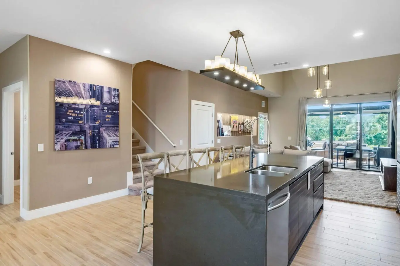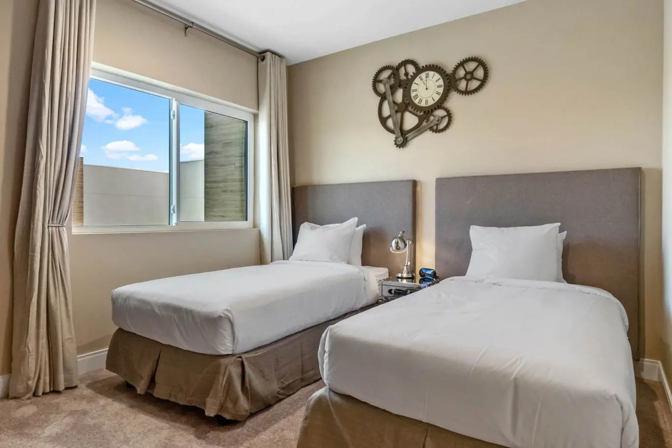 Ficamos aqui como um grupo de 6 e tivemos espaço mais do que suficiente. Cada quarto tinha seu próprio banheiro, além de um banheiro extra no andar de baixo, o que era muito conveniente. TVs em todos os cômodos e uma sala de estar aconchegante facilitavam o relaxamento de todos. A casa era exatamente como descrita, com ótimas comodidades, como cozinha completa, lavadora e secadora de roupas, estacionamento designado e até mesmo um terraço com churrasqueira e banheira de hidromassagem. O condomínio fechado era tranquilo e parecia seguro. A equipe foi além, deixando uma cesta de boas-vindas incrível com guloseimas, o que nos fez sentir em casa. A localização foi ótima, perto de um supermercado e muitas opções de comida. O check-in foi simples e a equipe foi responsiva e fácil de se comunicar. Tivemos uma estadia maravilhosa e definitivamente recomendaria esta propriedade.