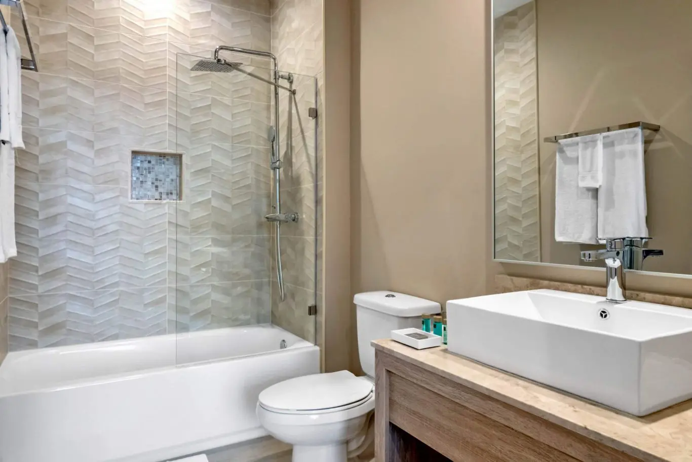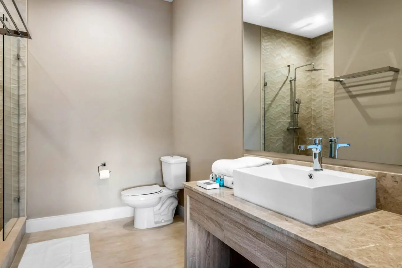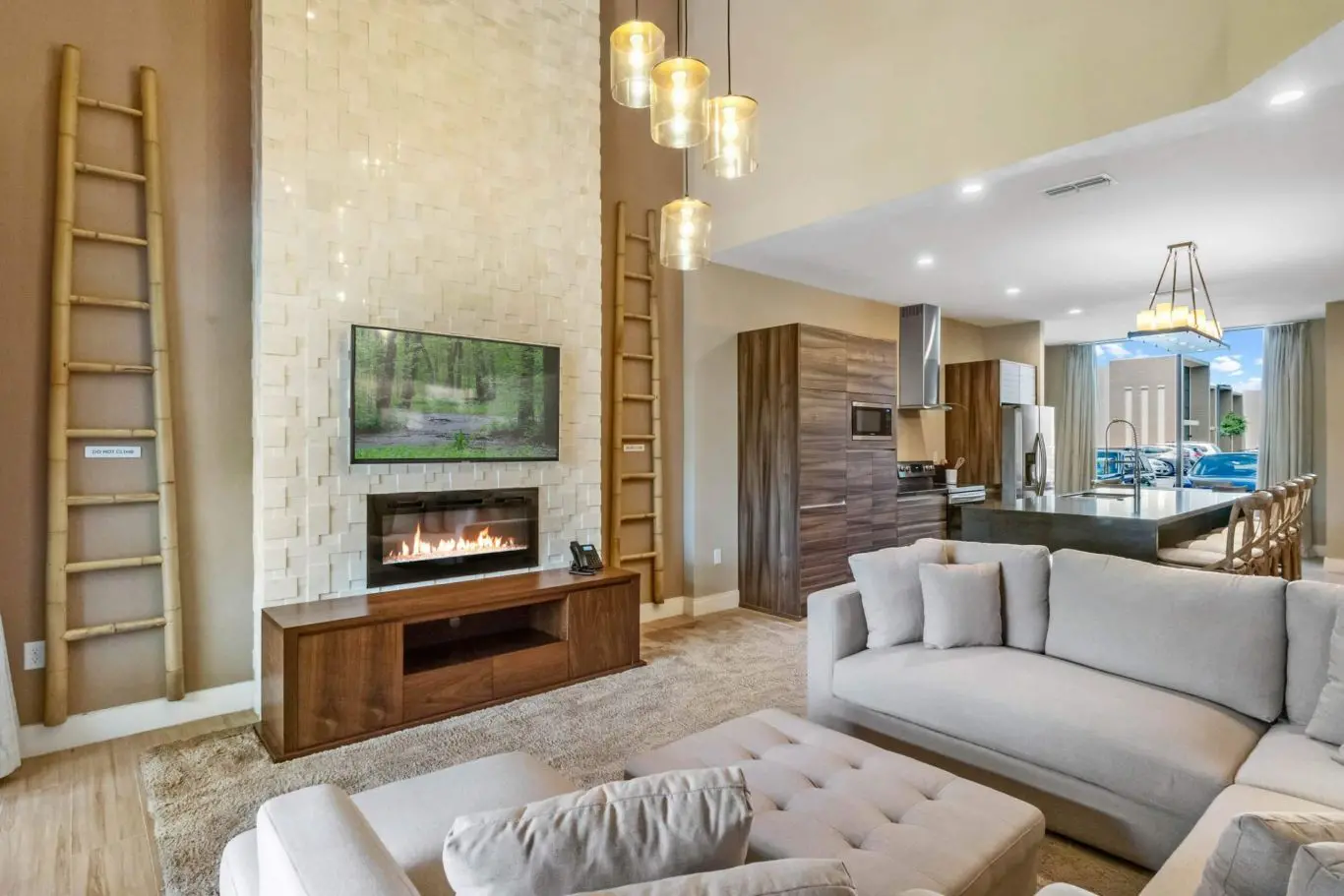 Ficamos aqui como um grupo de 6 e tivemos espaço mais do que suficiente. Cada quarto tinha seu próprio banheiro, além de um banheiro extra no andar de baixo, o que era muito conveniente. TVs em todos os cômodos e uma sala de estar aconchegante facilitavam o relaxamento de todos. A casa era exatamente como descrita, com ótimas comodidades, como cozinha completa, lavadora e secadora de roupas, estacionamento designado e até mesmo um terraço com churrasqueira e banheira de hidromassagem. O condomínio fechado era tranquilo e parecia seguro. A equipe foi além, deixando uma cesta de boas-vindas incrível com guloseimas, o que nos fez sentir em casa. A localização foi ótima, perto de um supermercado e muitas opções de comida. O check-in foi simples e a equipe foi responsiva e fácil de se comunicar. Tivemos uma estadia maravilhosa e definitivamente recomendaria esta propriedade.