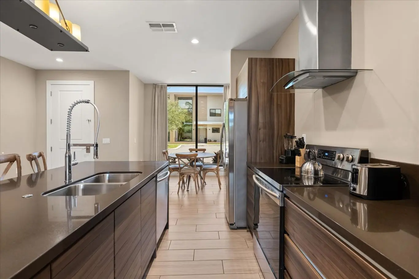 Adoramos esta propriedade e as unidades têm uma sensação de luxo e muito espaço para a nossa família de 6 adultos. Cada quarto com um banho completo é incrível! A localização é muito perto dos parques e restaurantes/lojas. Você realmente não pode superá-lo. Esta unidade em particular mostra um pouco de desgaste - azulejo solto no banheiro principal, por exemplo, e o tapete da sala de estar é muito antigo, mas no geral está tudo bem. As camas e chuveiros são confortáveis. Presumo que sejam proprietários remotos com gerenciamento de propriedade local, e a equipe responde rapidamente, mas o código do portão estava errado e não conseguimos entrar. Felizmente, um guarda estava passando e nos deixou entrar (o portão não é tripulado). Ainda havia um trabalhador na unidade, então tivemos que esperar alguns minutos para entrar. O pior foi que não havia Wi-Fi e a única resposta foi "procurar o roteador que poderia ter sido reiniciado", mas não havia roteador em nenhum lugar. Eles foram rigorosos no horário de checkout, o que eu aceito, mas o "não" geral foi irritante depois que a unidade não estava pronta no check-in (só pedimos uma hora).