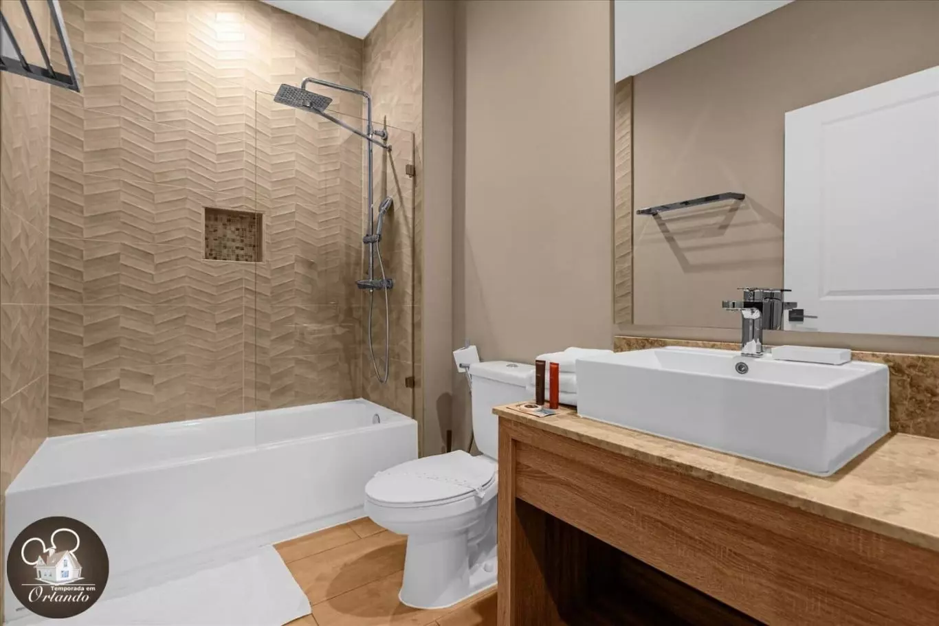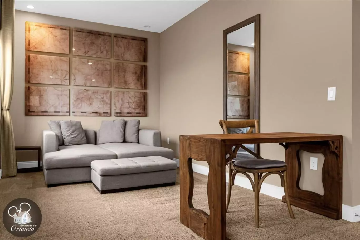 A casa oferece Wi-Fi de alta velocidade, móveis modernos, utensílios completos e conforto em cada detalhe, perfeita para descansar após um dia de parques.
