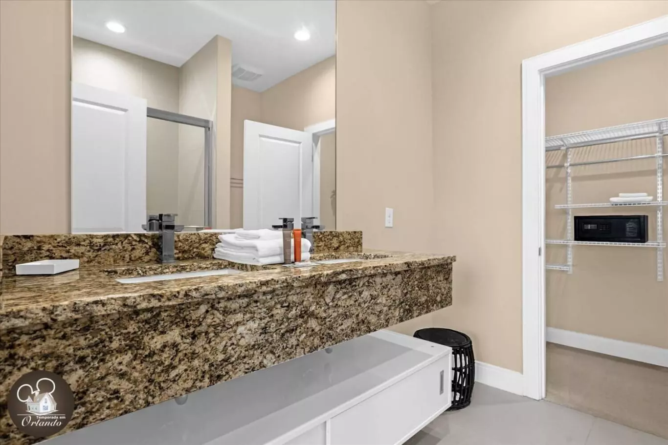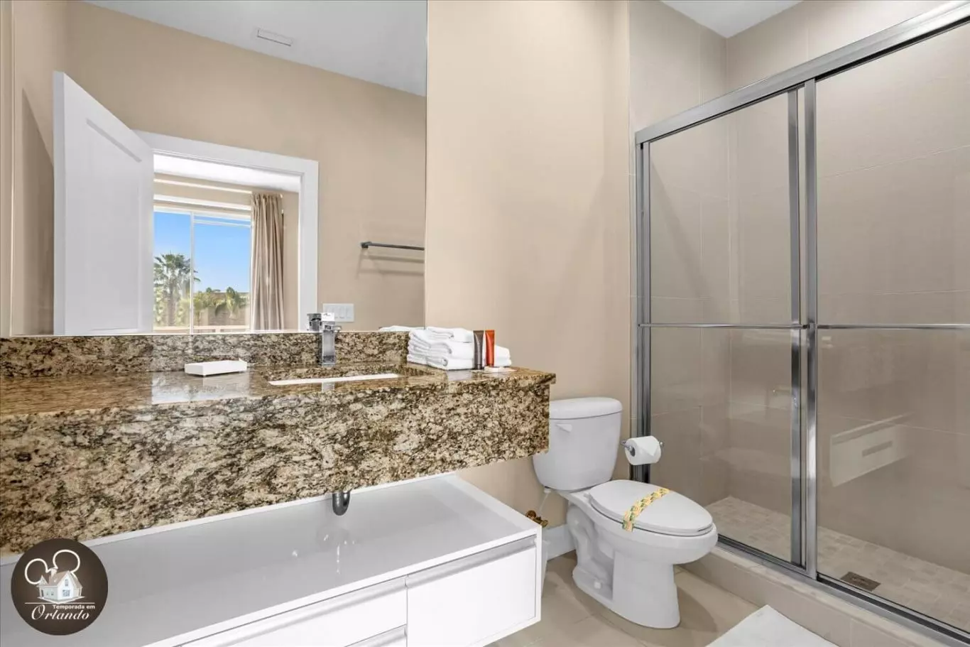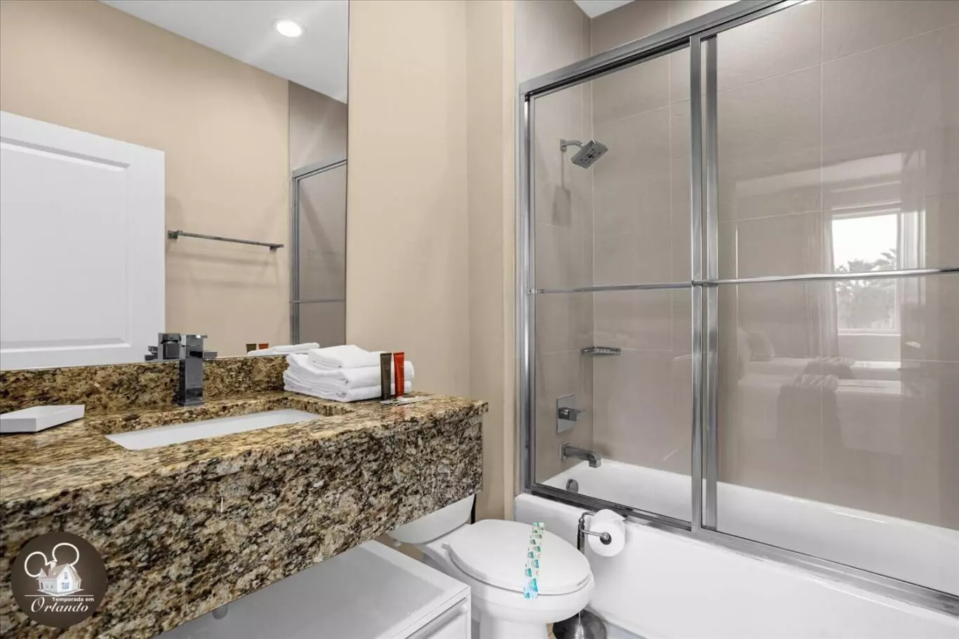 Ficamos muito satisfeitos com a nossa estadia aqui! Adoro que cada quarto tenha seu próprio banheiro, é muito espaçoso dar a todos um espaço privado, mas ainda uma área comum se unir. Muito limpo, nem um pouco alto, o AC funcionou bem e está perto da Disney. Eles nos deixaram uma cesta de presentes que foi muito apreciada.