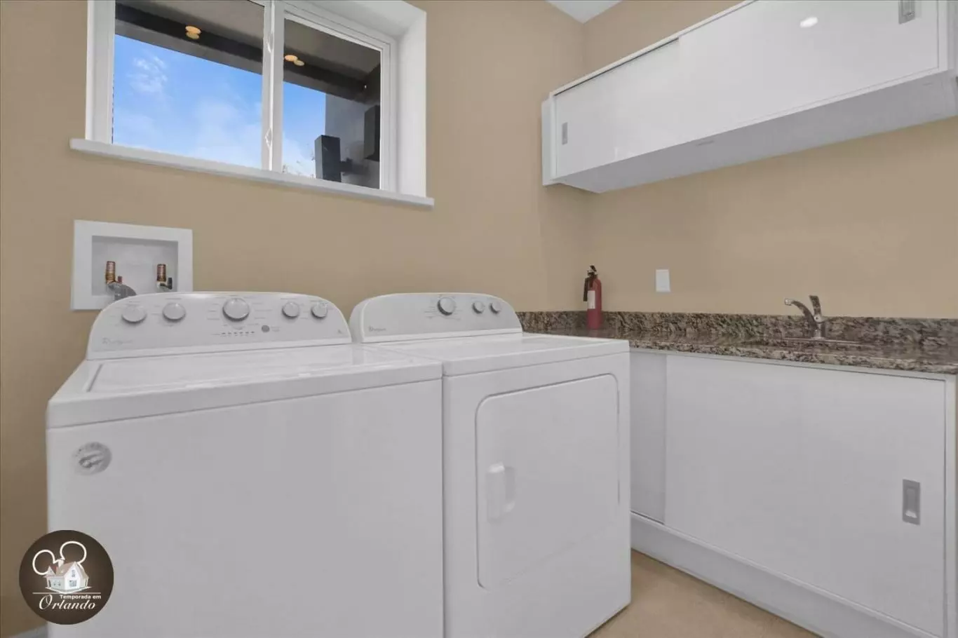 A casa é linda, nova e totalmente equipada. Extremamente perto dos parques da Disney. Havia sal, pimenta, açúcar e azeite, o que era muito conveniente. Eles também deixaram um pacote de limpeza que incluía papel higiênico extra, sacos, sabão para máquina de lavar louça, mas sem sabão para lavar roupa, que eu perguntei se eles poderiam me deixar pelo menos uma cápsula para pelo menos uma lavagem. Expliquei que moro em outro país e que em dois dias pegaria meu voo de volta, não ia comprar um saco inteiro de sabão em pó no Walmart para uma única lavagem. Rodrigo respondeu que não, que ele não poderia me dar uma cápsula de sabão em pó, que "a publicação não dizia que o sabão em pó estava incluído", o que me pareceu rude. Outro detalhe é que o ar condicionado na suíte principal não é suficiente, estava um pouco quente, mas conseguimos descansar bem de qualquer maneira. Embora esses dois pontos fossem a única coisa que não gostamos, ficaríamos novamente, pois a casa é muito agradável. Eu dou 5 ????