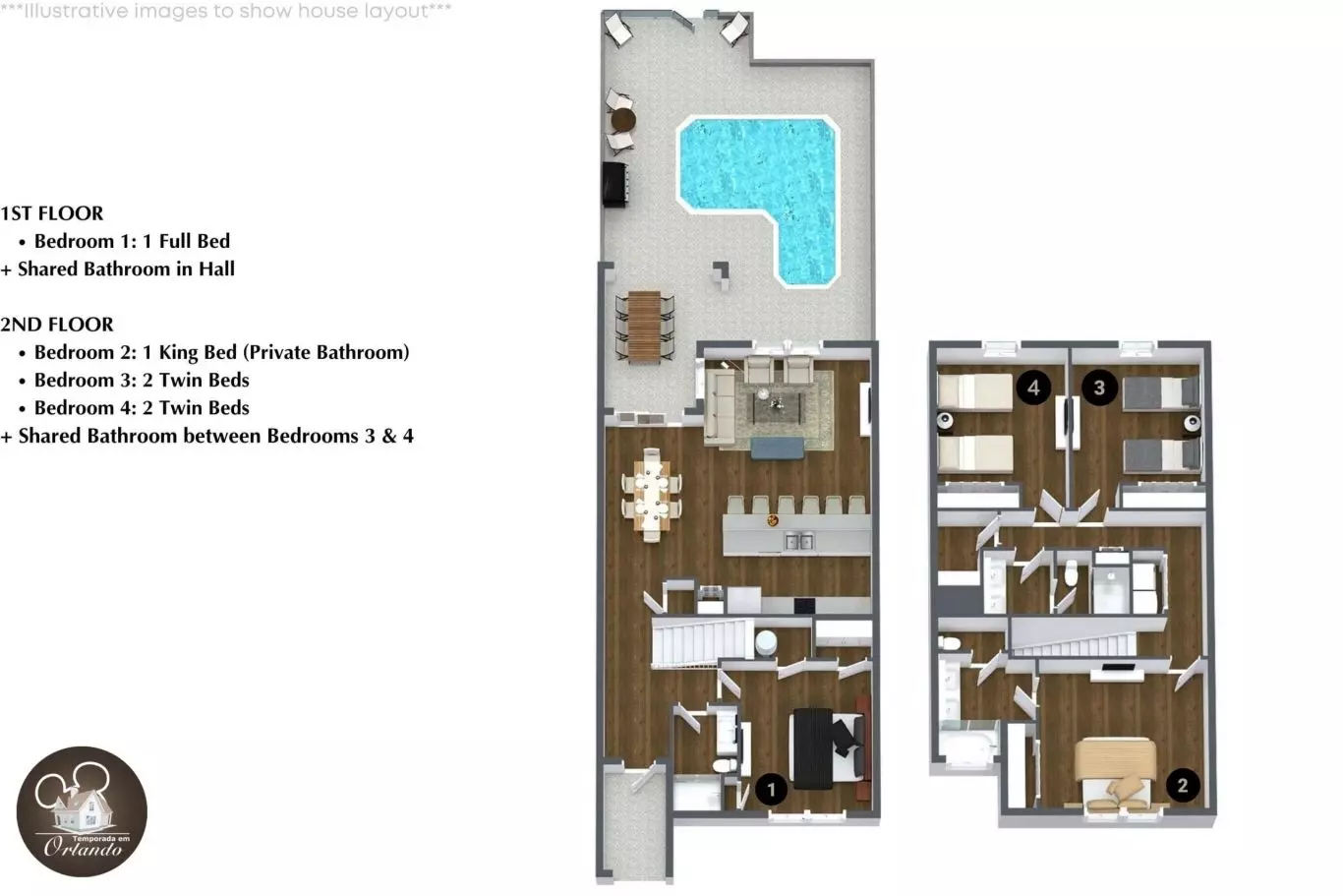 Casa com 4 Quartos, Piso Frio e Piscina Privativa — Viva a Magia da Disney com Conforto