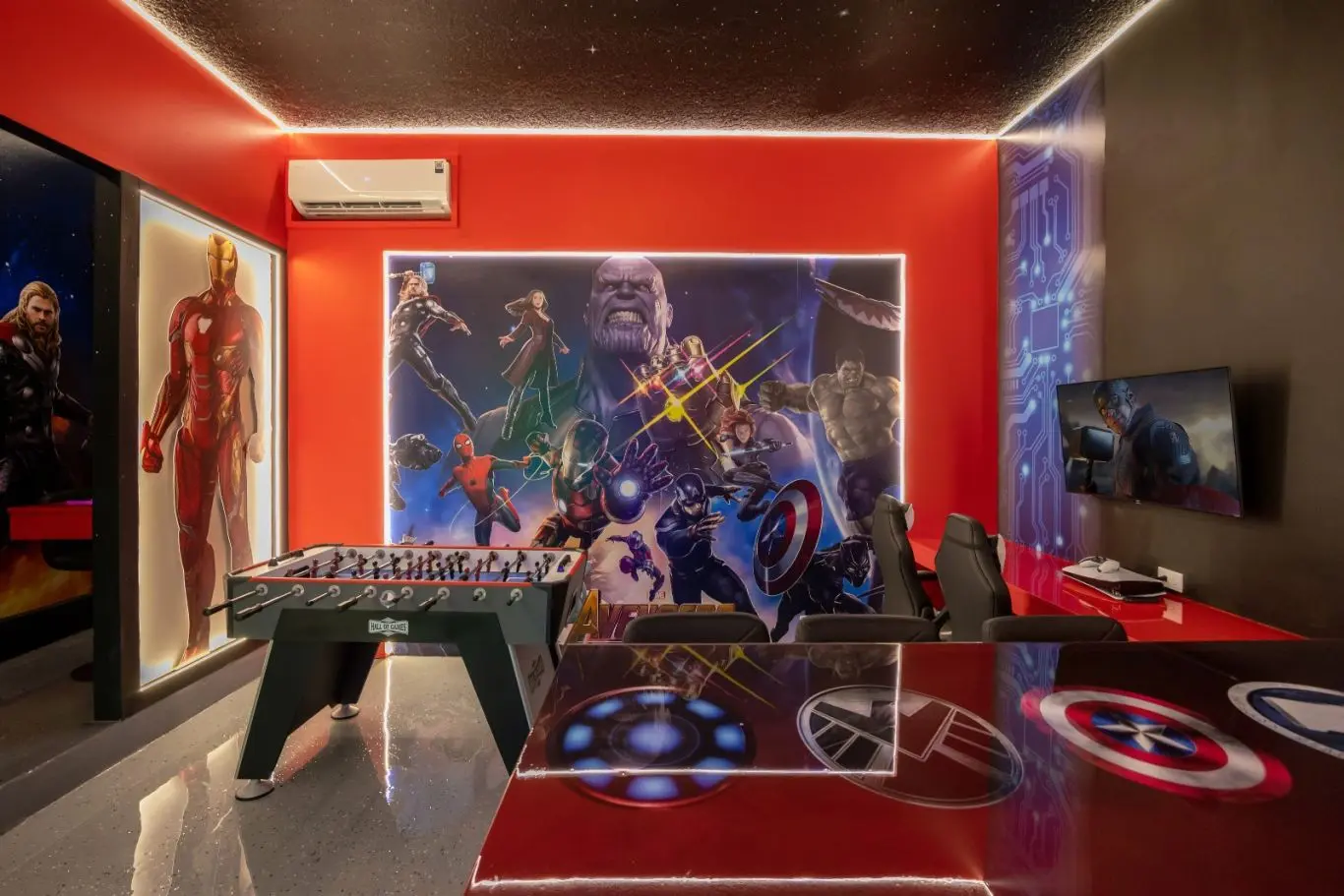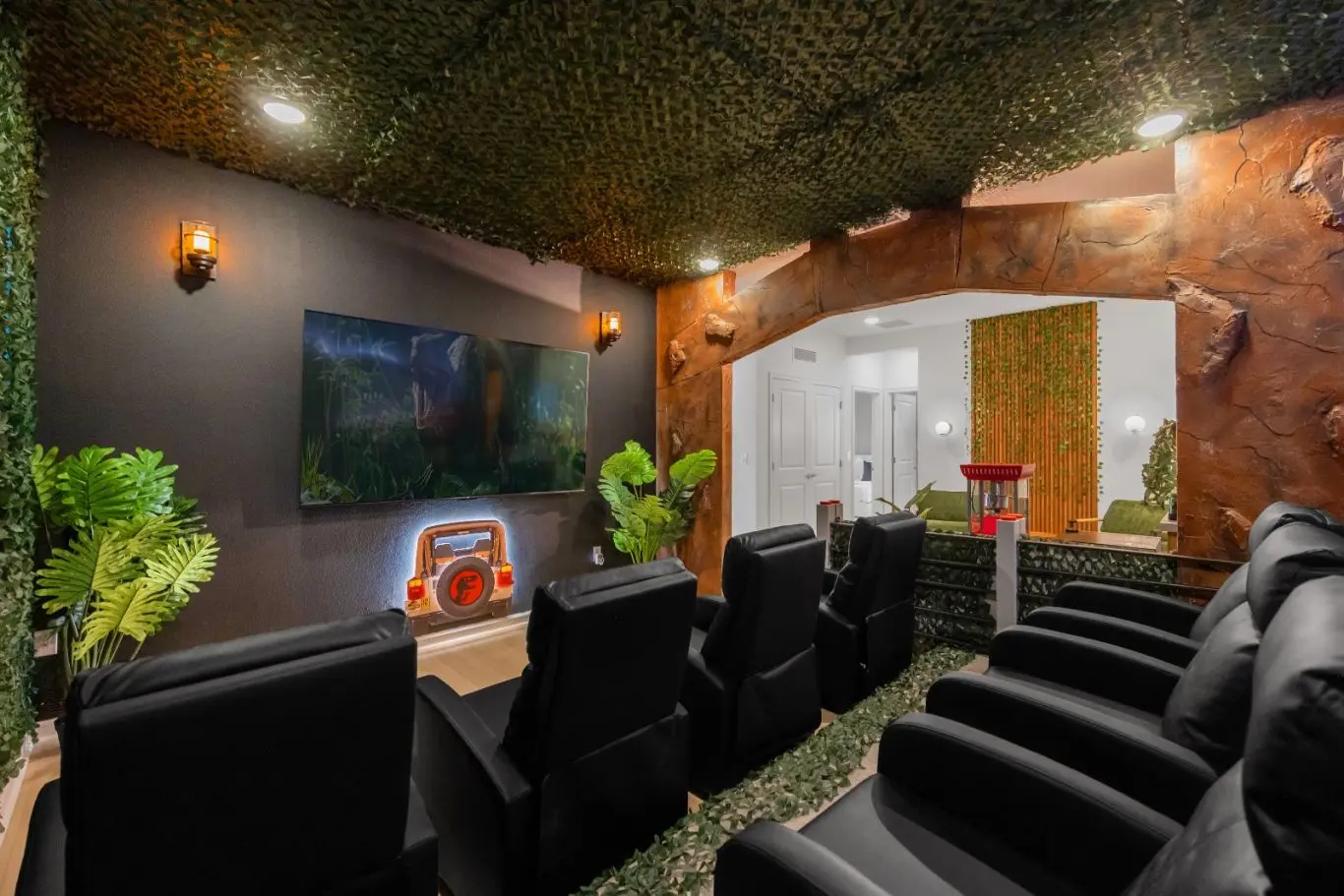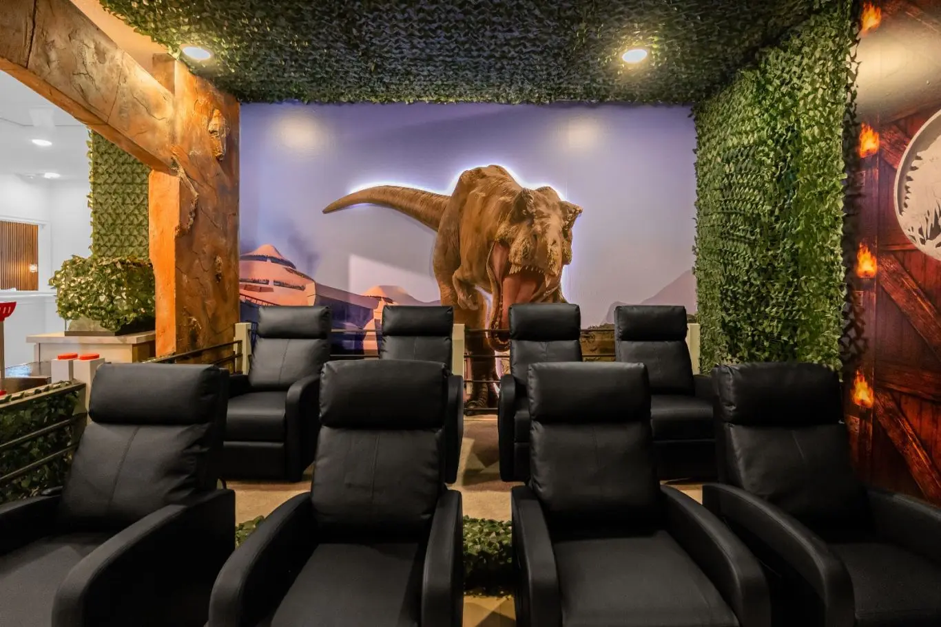 Sala de cinema e salão de jogos para o entretenimento completo