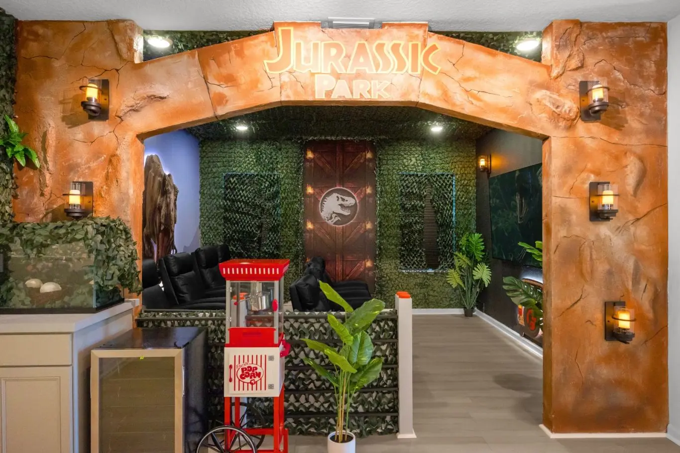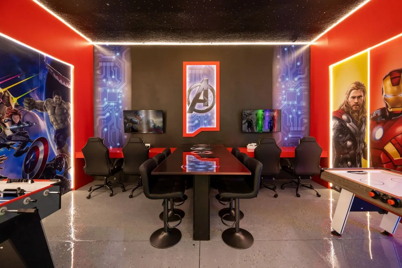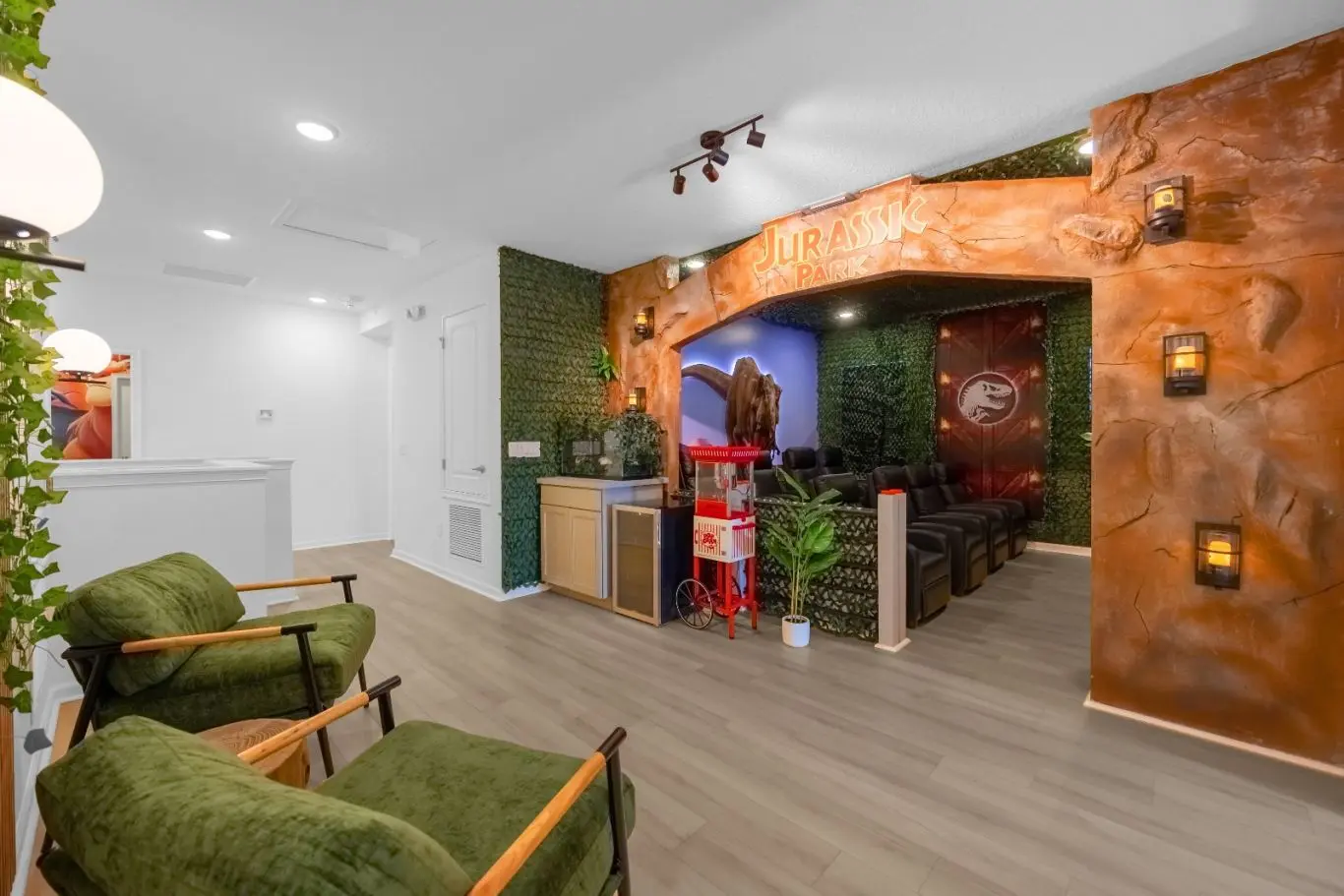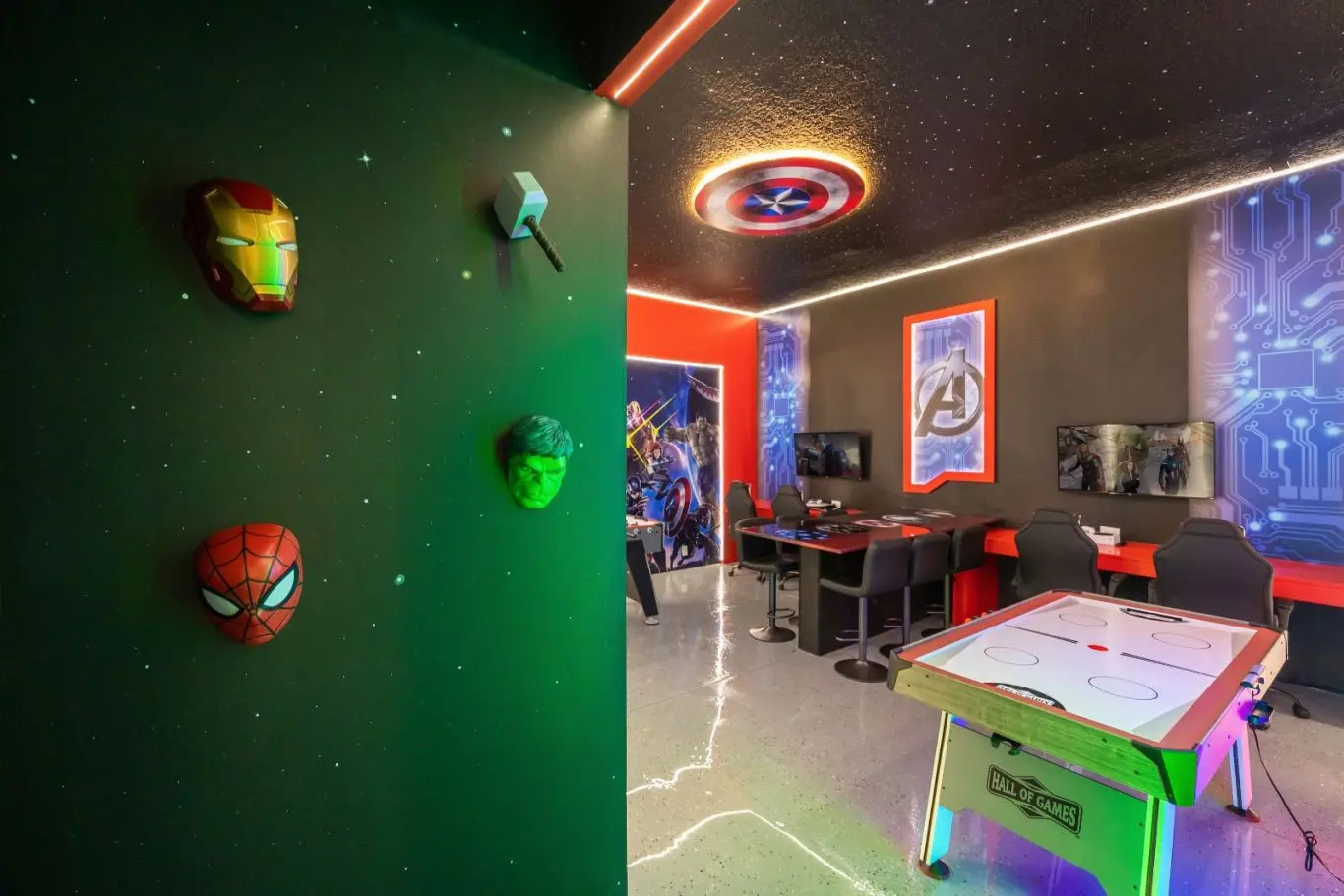 Sala de cinema e salão de jogos para o entretenimento completo