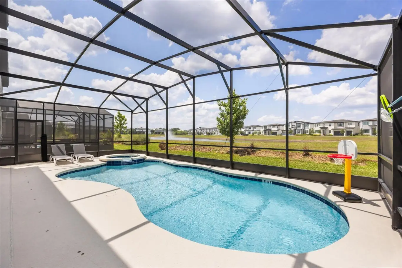 Mansão com 12 quartos, sala de cinema e piscina privativa com jacuzzi perto da Disney - Fundo para o Lago
