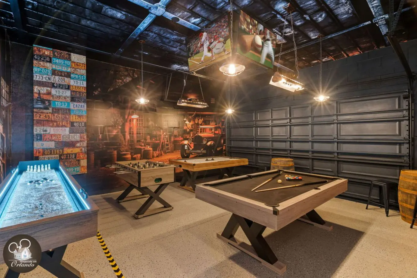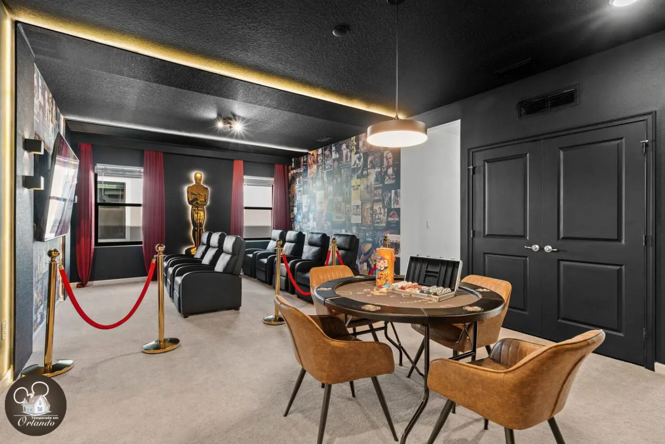 Sala de cinema e salão de jogos para lazer completo