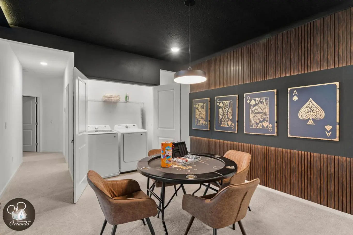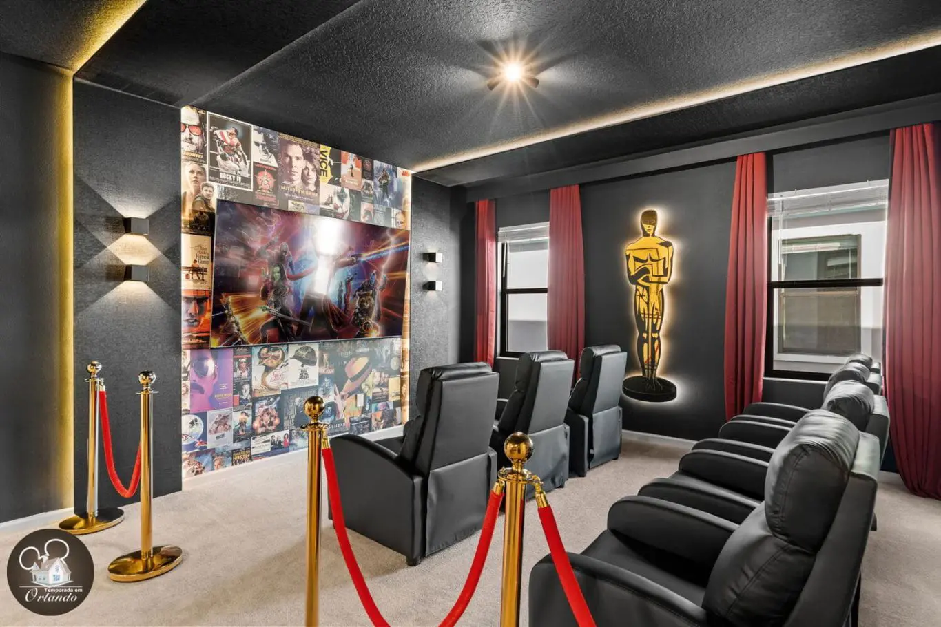 A sala de cinema proporciona uma experiência aconchegante para toda a família. Já o salão de jogos é ideal para momentos descontraídos e divertidos sem sair de casa.