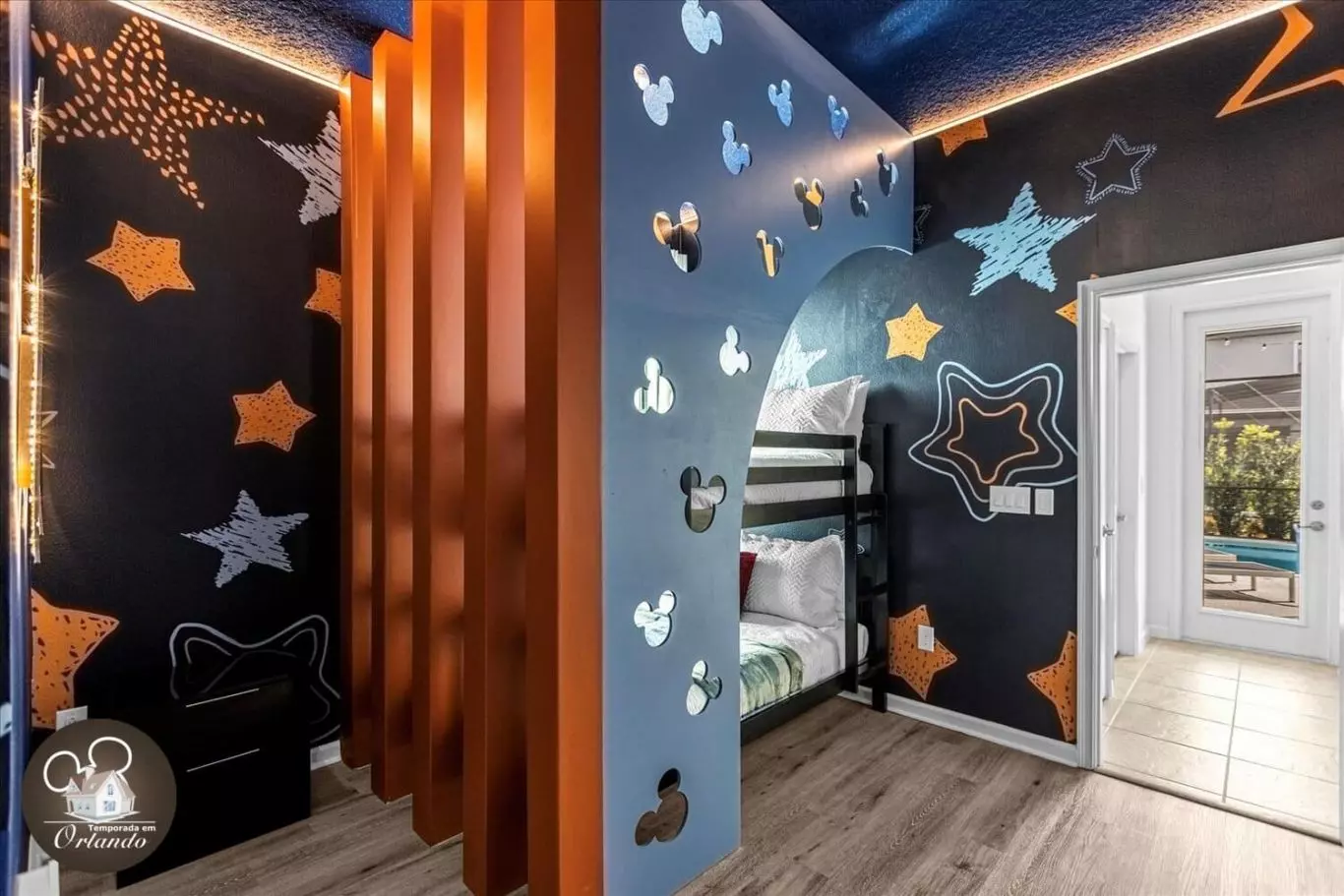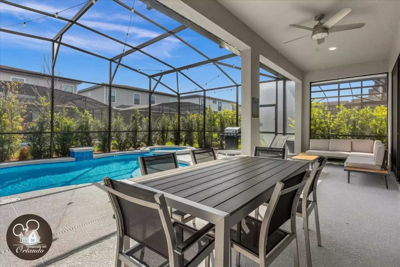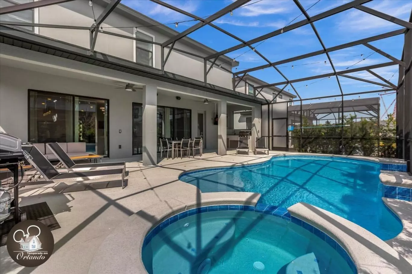 Localizada a poucos minutos dos parques da Disney, esta mansão espetacular com 10 quartos é ideal para grandes famílias, grupos de amigos ou viagens em equipe. Com capacidade para até 27 pessoas, ela oferece o equilíbrio perfeito entre conforto, luxo e praticidade.