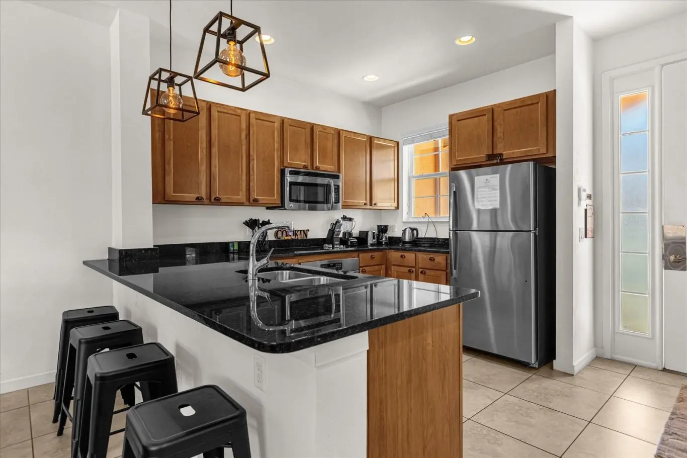 A equipe respondeu na hora todas as nossas dúvidas e preocupações! Muito amigável! O local era muito limpo e tinha tudo o que precisávamos para nossa viagem de 7 dias. Esta localização é uma moradia de esquina com um grande quintal cercado. Curta caminhada de 3 minutos até a grande piscina da comunidade e muito perto da saída. Esta localização fica perto de tudo. Você pode caminhar até a cidade velha ou até mesmo o mundo dos food trucks (recomendo os food trucks). Comunidade muito tranquila e pacífica. Todo mundo foi muito amigável. Eu definitivamente recomendaria este local e definitivamente gostaríamos de voltar. Duas coisas que eu recomendaria é que se você estiver vindo com crianças pequenas, traga portões para bebês para as escadas. Tivemos que bloquear as escadas. Além disso, a maçaneta da porta da frente para sair foi muito fácil para meu filho de dois anos abrir. Talvez coloque uma trava de corrente no topo. Eu e uma família algumas casas abaixo usamos uma das poltronas individuais para bloquear a porta. (Bônus) happy hour no bar do clube das 5 às 6!