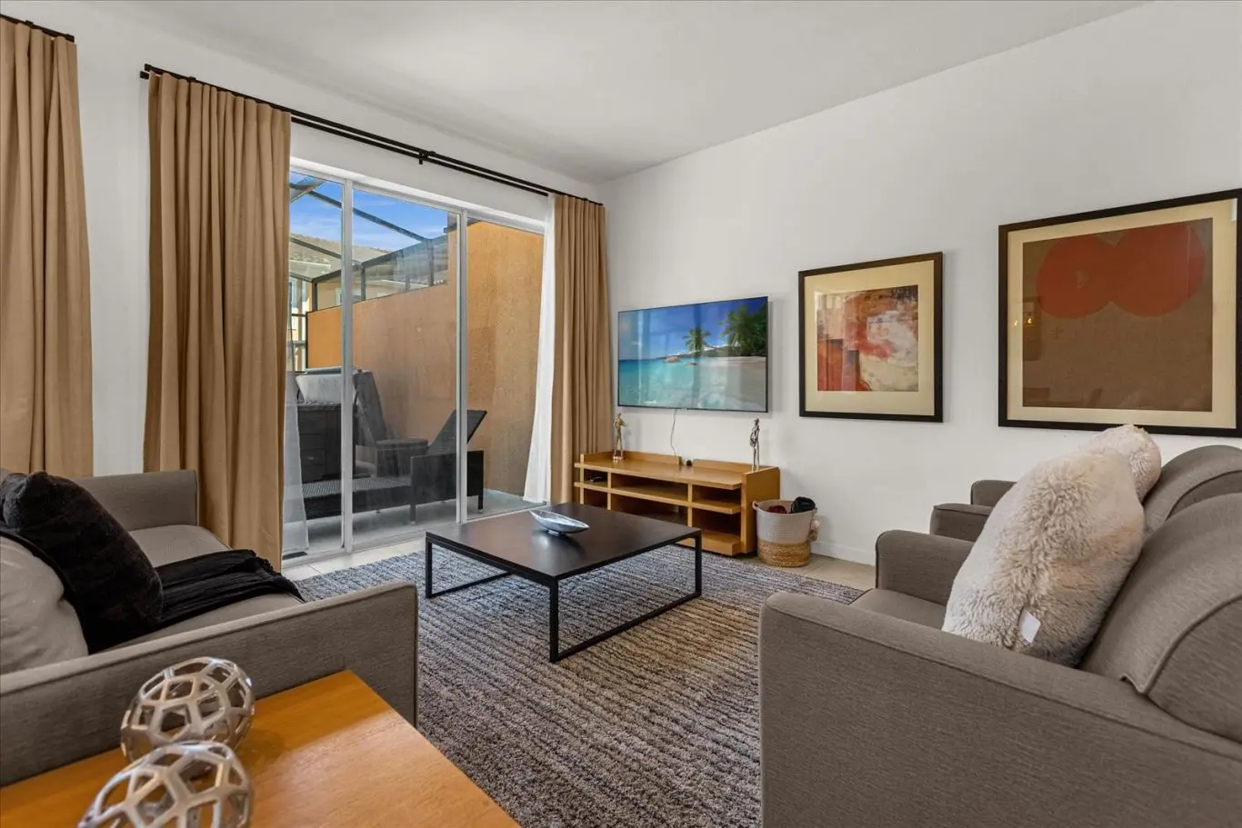 Nossa estadia foi ótima, o lugar era muito limpo e confortável. Tivemos o mesmo problema com o código do portão que outros comentários mencionaram, mas o segurança nos deixou entrar com nossas informações de reserva e recebemos uma resposta da equipe com o novo código muito rapidamente. Foi uma curta viagem de carro até a Disney e praticamente qualquer outra coisa que queríamos fazer. Há uma pequena área turística na mesma rua com uma ótima pizzaria, não muito a pé, mas muito perto de carro.