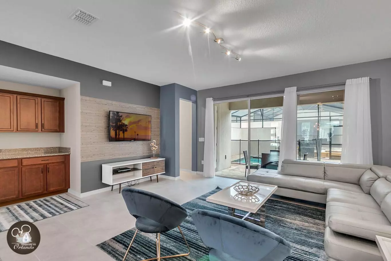 Ótimo custo-benefício, perto de tudo! Minha filha adorou a piscina, tanto na comunidade quanto na casa... o passeio de boogie board na comunidade é uma atividade paga separada e não incluída nas comodidades, mas ainda muito divertido. O Clubhouse tem um restaurante e bar, a academia era ótima e ainda tem um pequeno fliperama para as crianças.