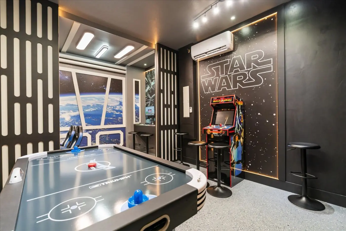 Mal podia esperar para sair desta casa para que eu possa me apressar e dar as 5 estrelas que ela merece. Parece muito melhor pessoalmente. Quando fizemos o check-in, tudo estava impecável e fomos abençoados com uma caixa de boas-vindas de lanches e guloseimas bem necessários. Esta casa era tão bem decorada e a sala de estar no andar de cima era o toque perfeito. Até a jukebox e a mesa de bilhar. Tivemos alguns problemas como encanamento e a água da piscina estar muito quente, mas eles foram resolvidos quase imediatamente - apesar de ser Natal.