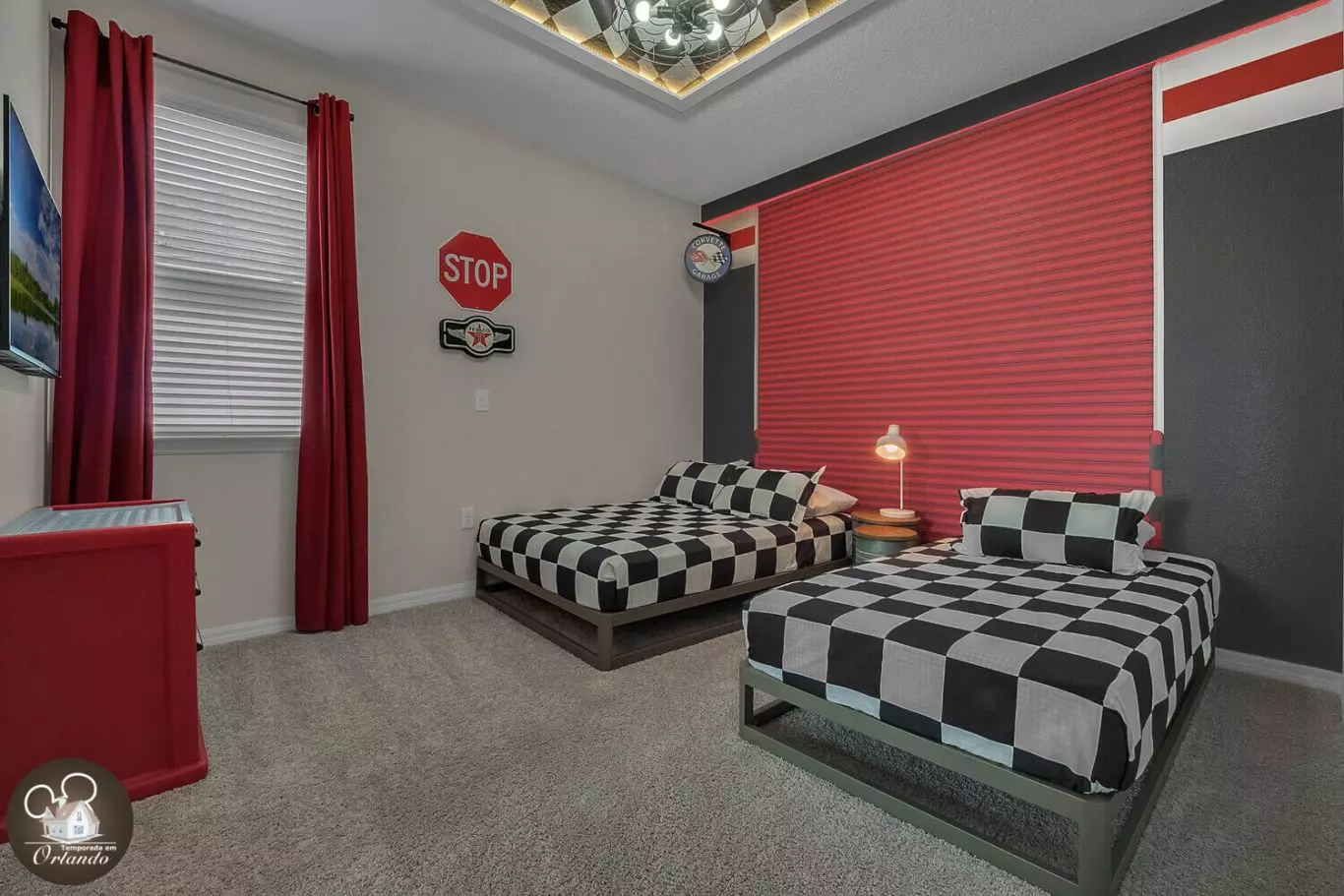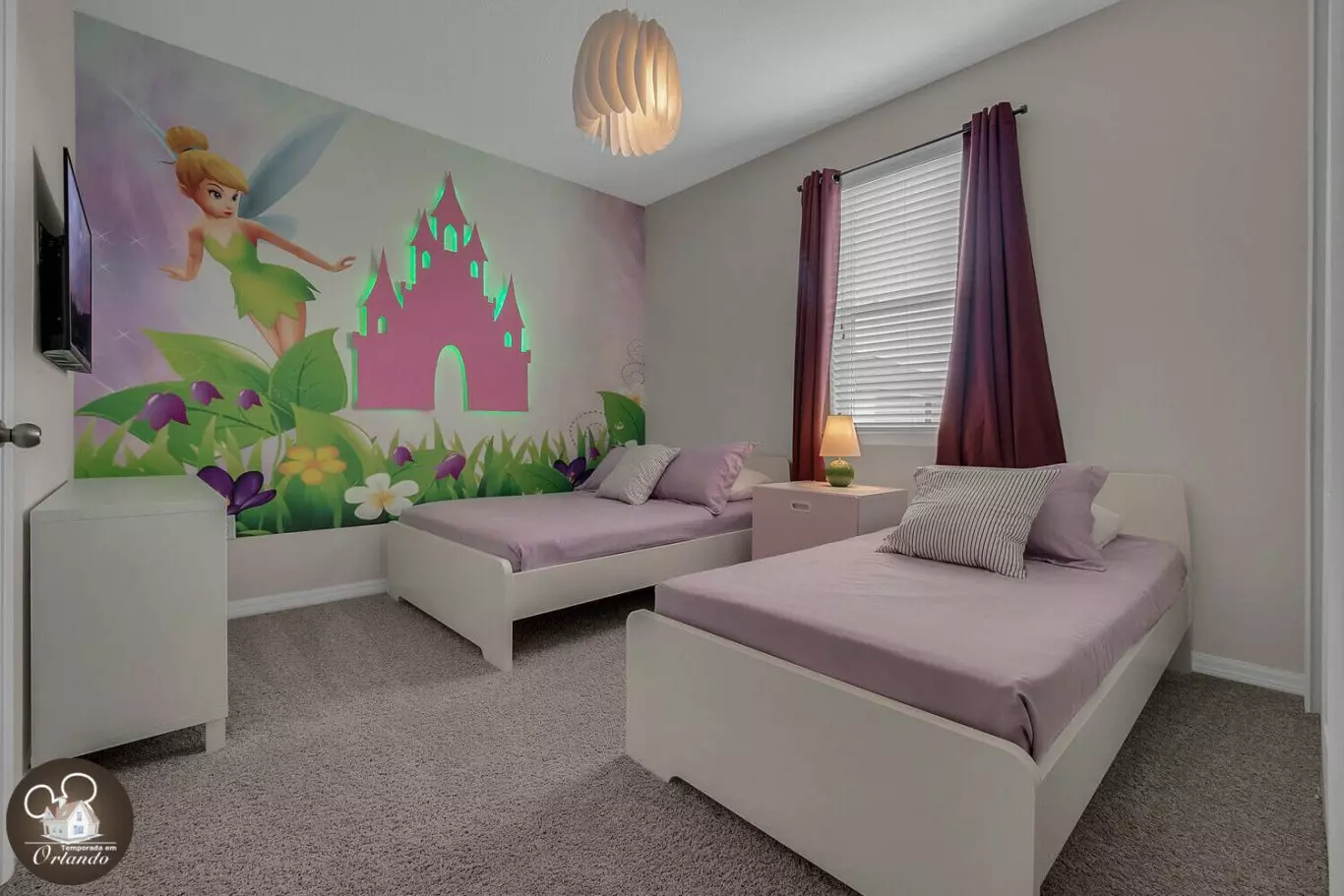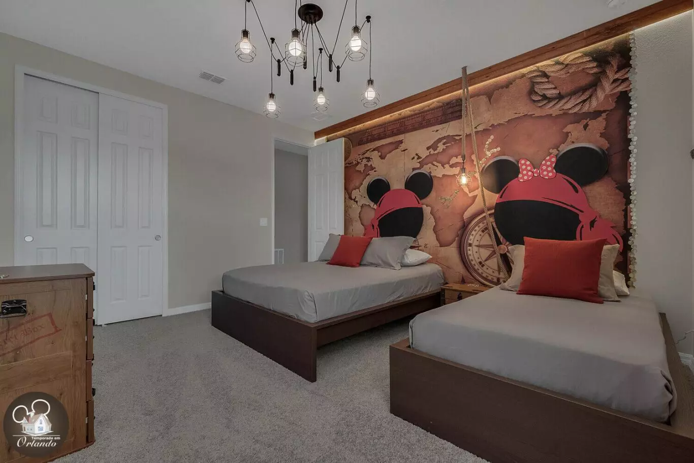 2 quartos com 1 cama de casal + 1 cama de solteiro (temas Minnie e Jogos)