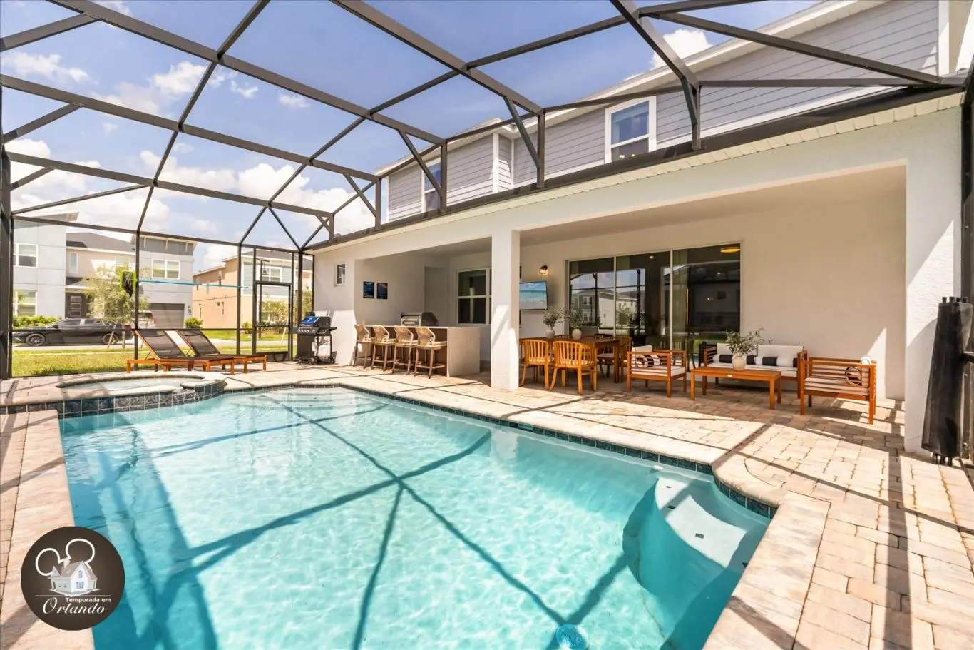Se você está planejando férias em grupo ou em família em Orlando, essa mansão é o lugar ideal para unir conforto, diversão e localização estratégica. Com 9 quartos e capacidade para até 21 pessoas, essa propriedade de alto padrão no Solara Resort oferece uma experiência completa de hospedagem, a poucos minutos da Disney.