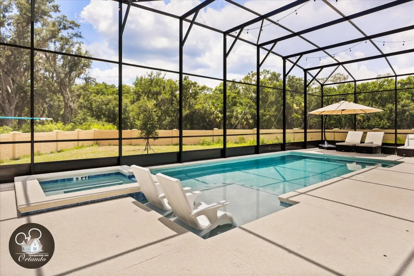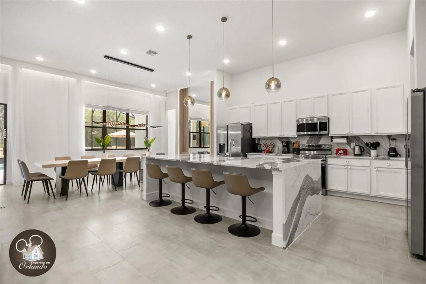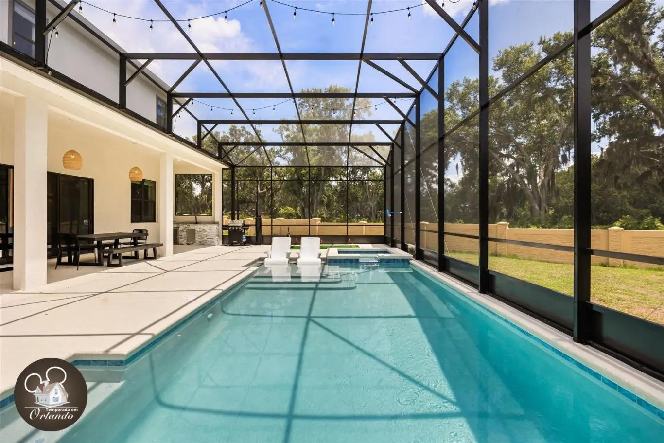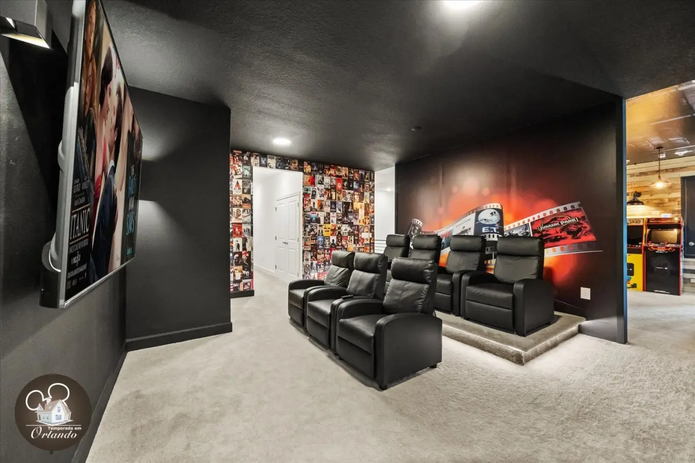 Se você busca uma experiência de alto padrão em Orlando com muito espaço e entretenimento, esta mansão é imbatível. Com 15 quartos, piscina privativa, sala de cinema, salão de jogos e localização estratégica, ela acomoda confortavelmente até 38 pessoas.