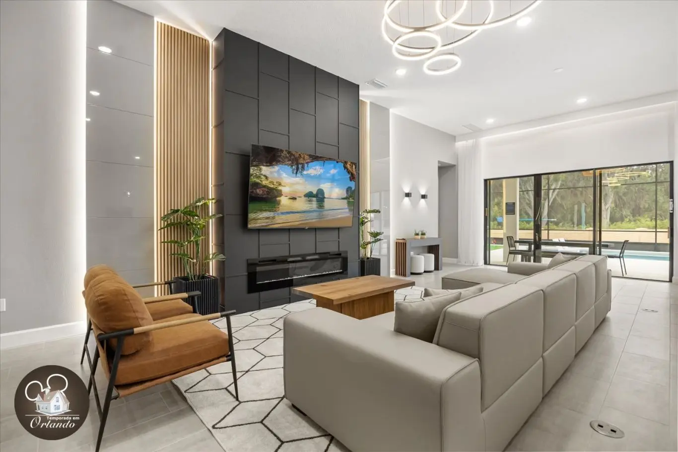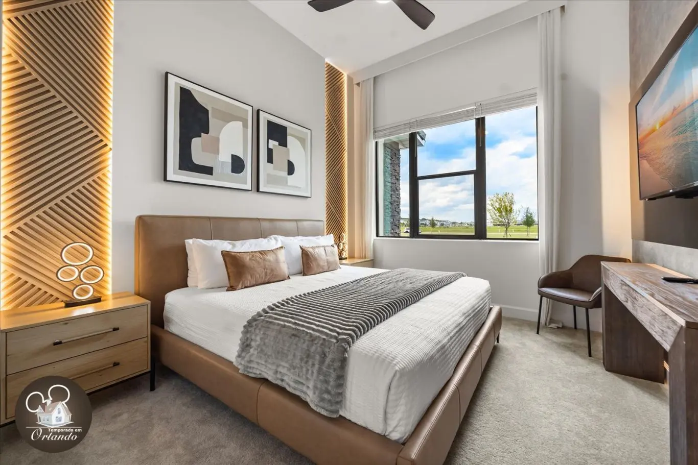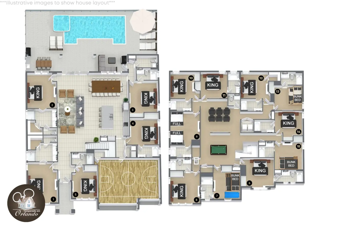 Se você busca uma experiência de alto padrão em Orlando com muito espaço e entretenimento, esta mansão é imbatível. Com 15 quartos, piscina privativa, sala de cinema, salão de jogos e localização estratégica, ela acomoda confortavelmente até 38 pessoas.