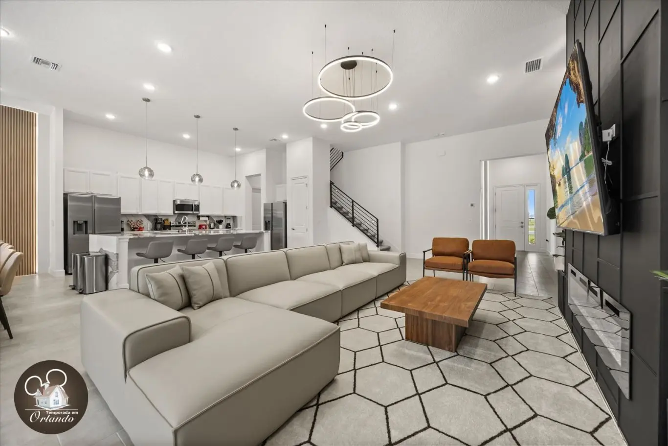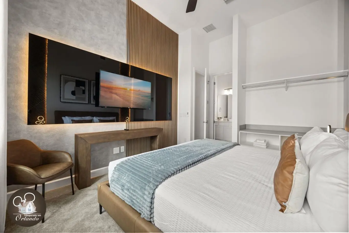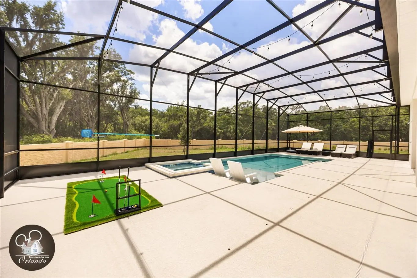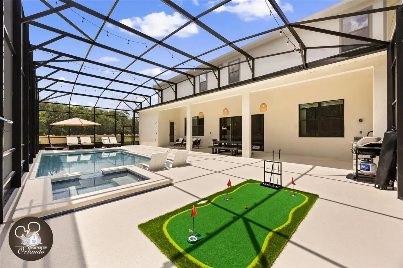 Se você busca uma experiência de alto padrão em Orlando com muito espaço e entretenimento, esta mansão é imbatível. Com 15 quartos, piscina privativa, sala de cinema, salão de jogos e localização estratégica, ela acomoda confortavelmente até 38 pessoas.