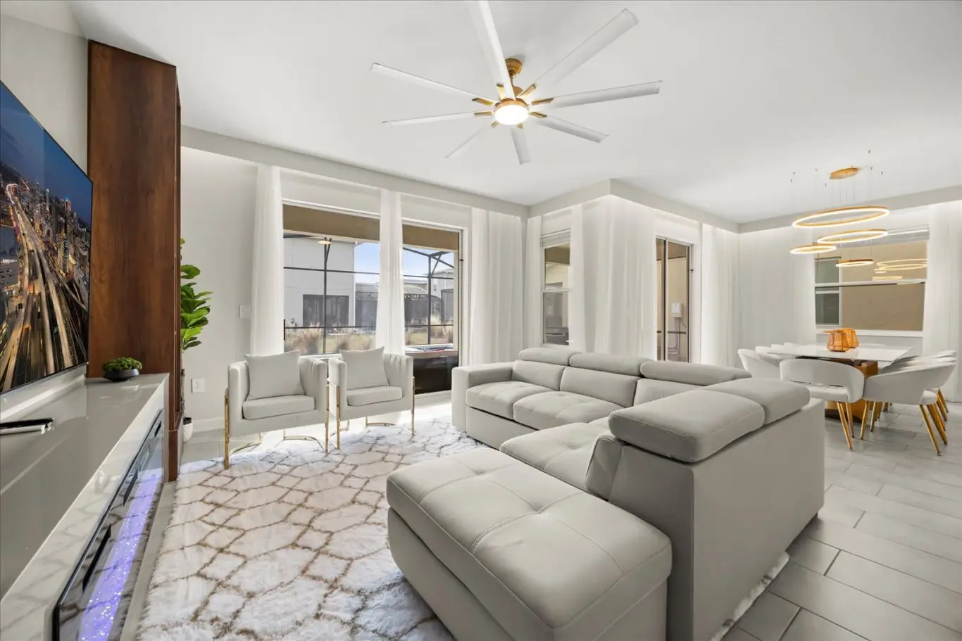 Pensando na sua comodidade, a mansão conta com Wi-Fi de alta velocidade em todos os ambientes, cozinha equipada com eletrodomésticos modernos e climatização completa. Tudo para garantir uma estadia confortável e conectada durante suas férias em Orlando.