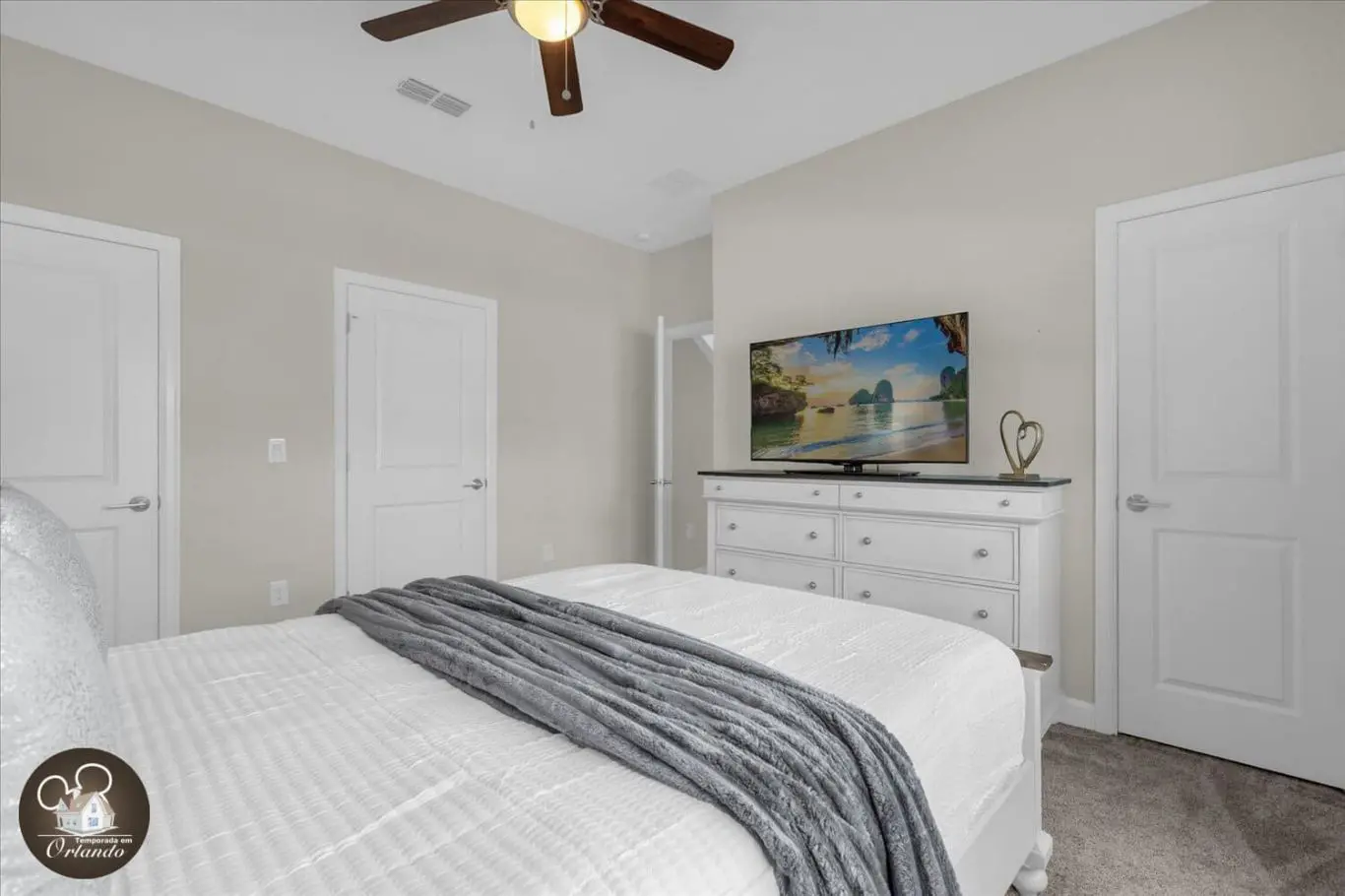 Com 4 quartos equipados com camas espaçosas e enxoval de qualidade, a casa acomoda até 8 hóspedes com conforto e privacidade.