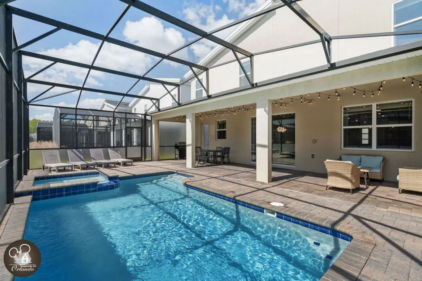 Mansão com 9 Quartos, Piscina Privativa com Jacuzzi, Cinema e Salão de Jogos – Acomoda até 28 Pessoas a Poucos Minutos da Disney