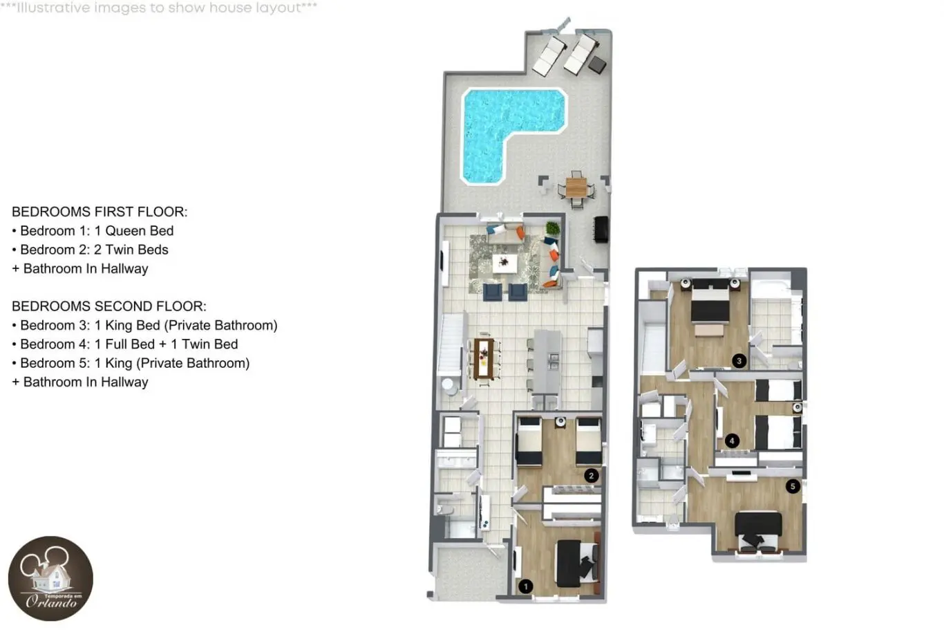 5 Quartos | Acomoda até 11 Pessoas | Piscina Privativa | Conectividade Moderna | Próxima à Disney