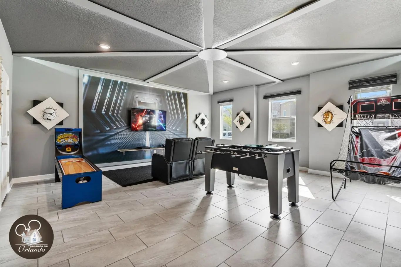 Diversão garantida para todas as idades. O salão de jogos da casa é