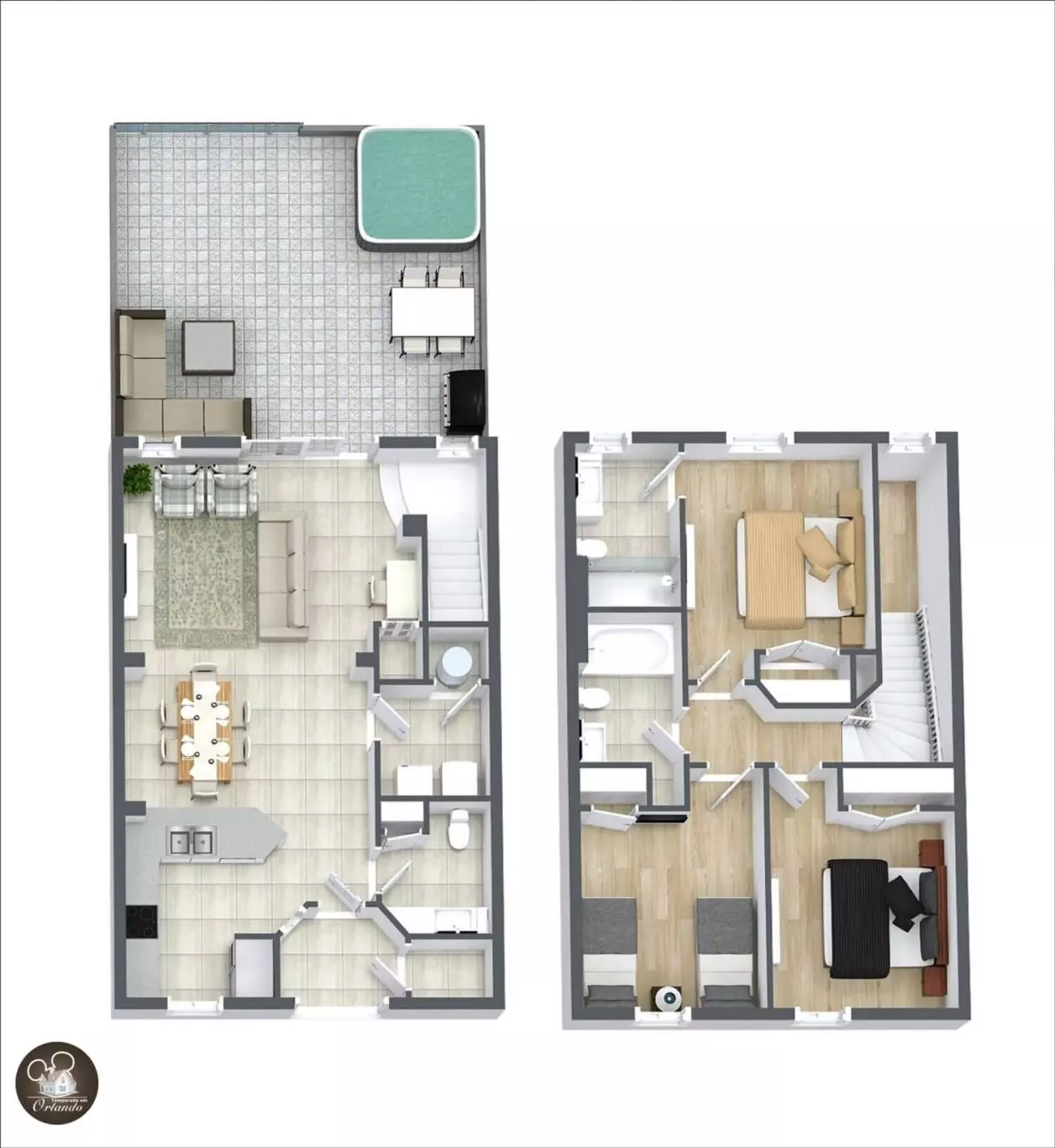 Essas acomodações são ideais para famílias com crianças, casais ou grupos de amigos que querem curtir Orlando com espaço e comodidade.
