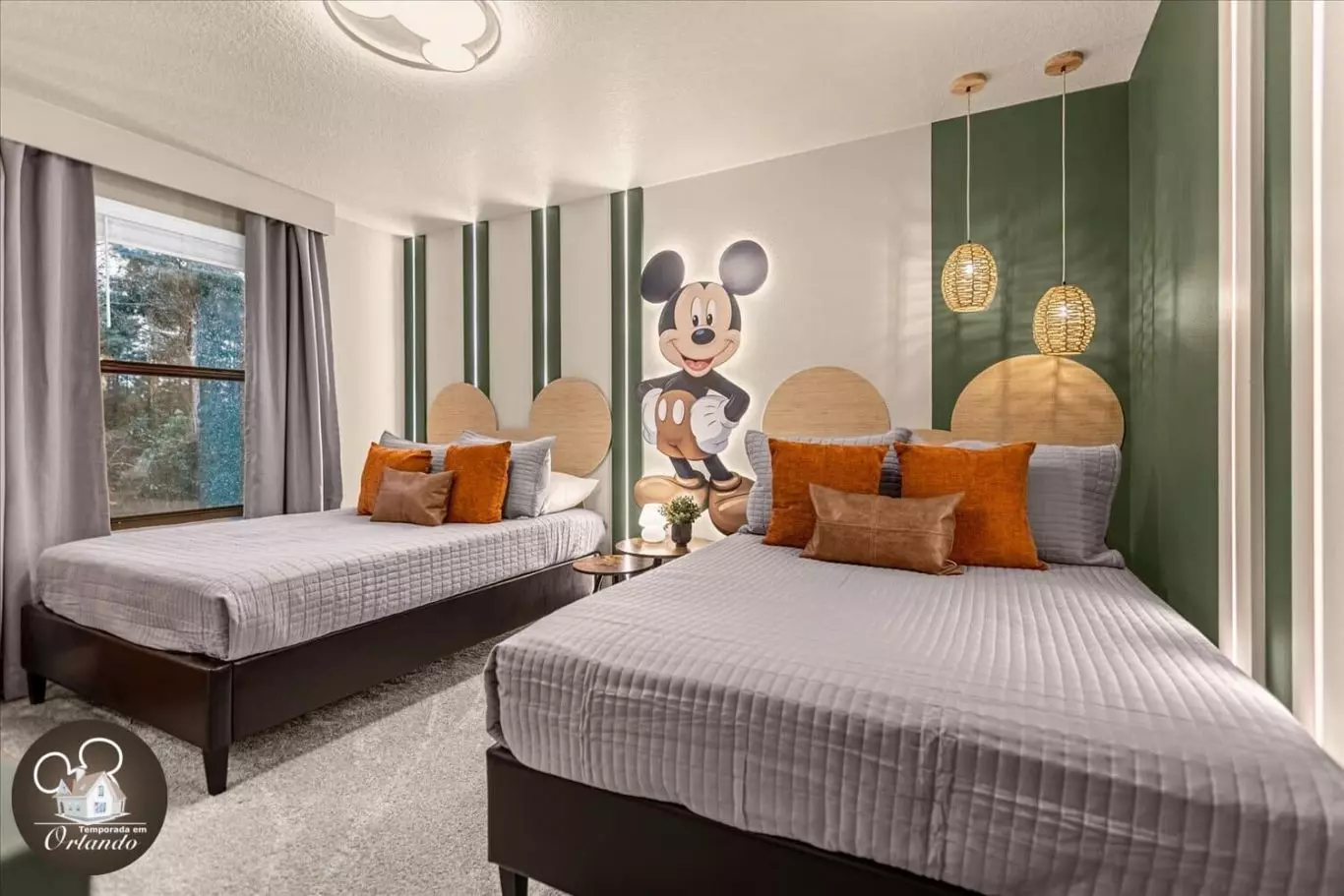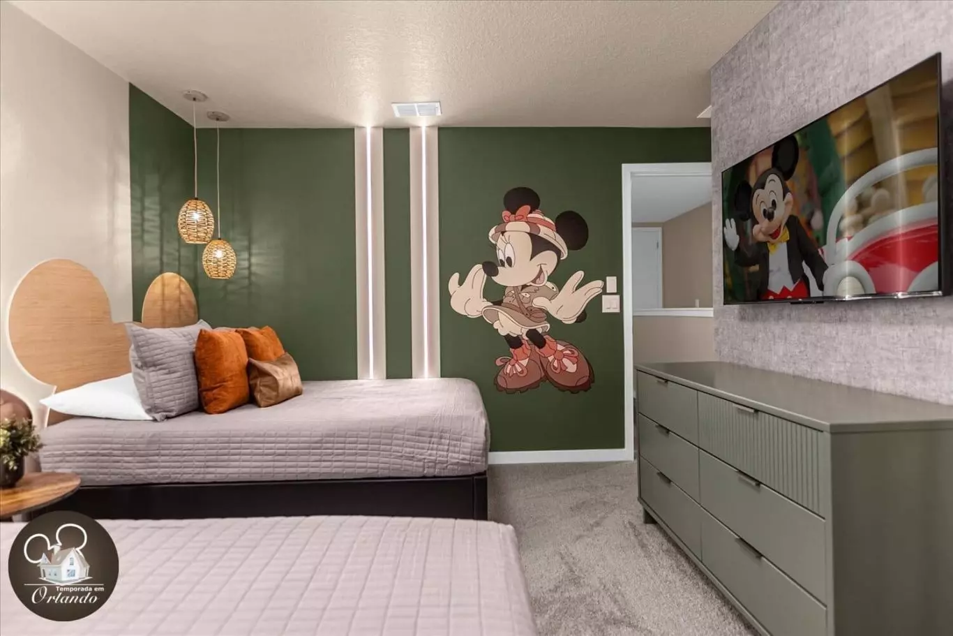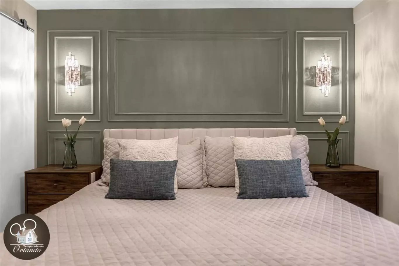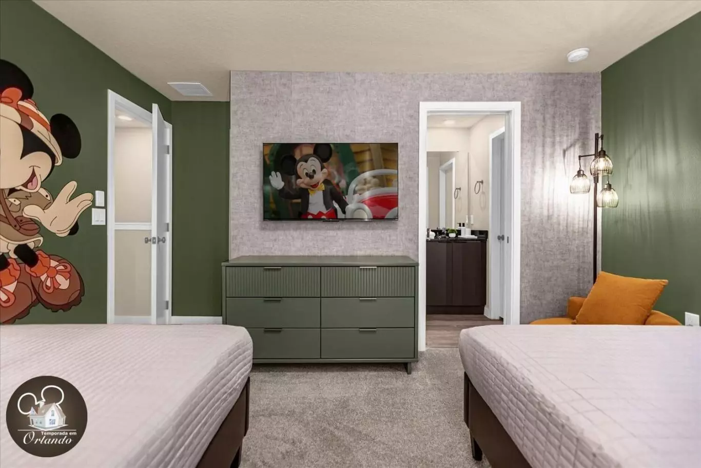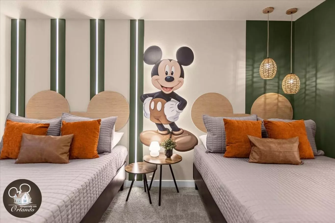 Logo na entrada, você encontra um ambiente integrado com sala de TV, jantar e cozinha americana. A decoração é encantadora, inspirada no clima mágico da Disney, com detalhes que tornam cada espaço acolhedor e funcional.