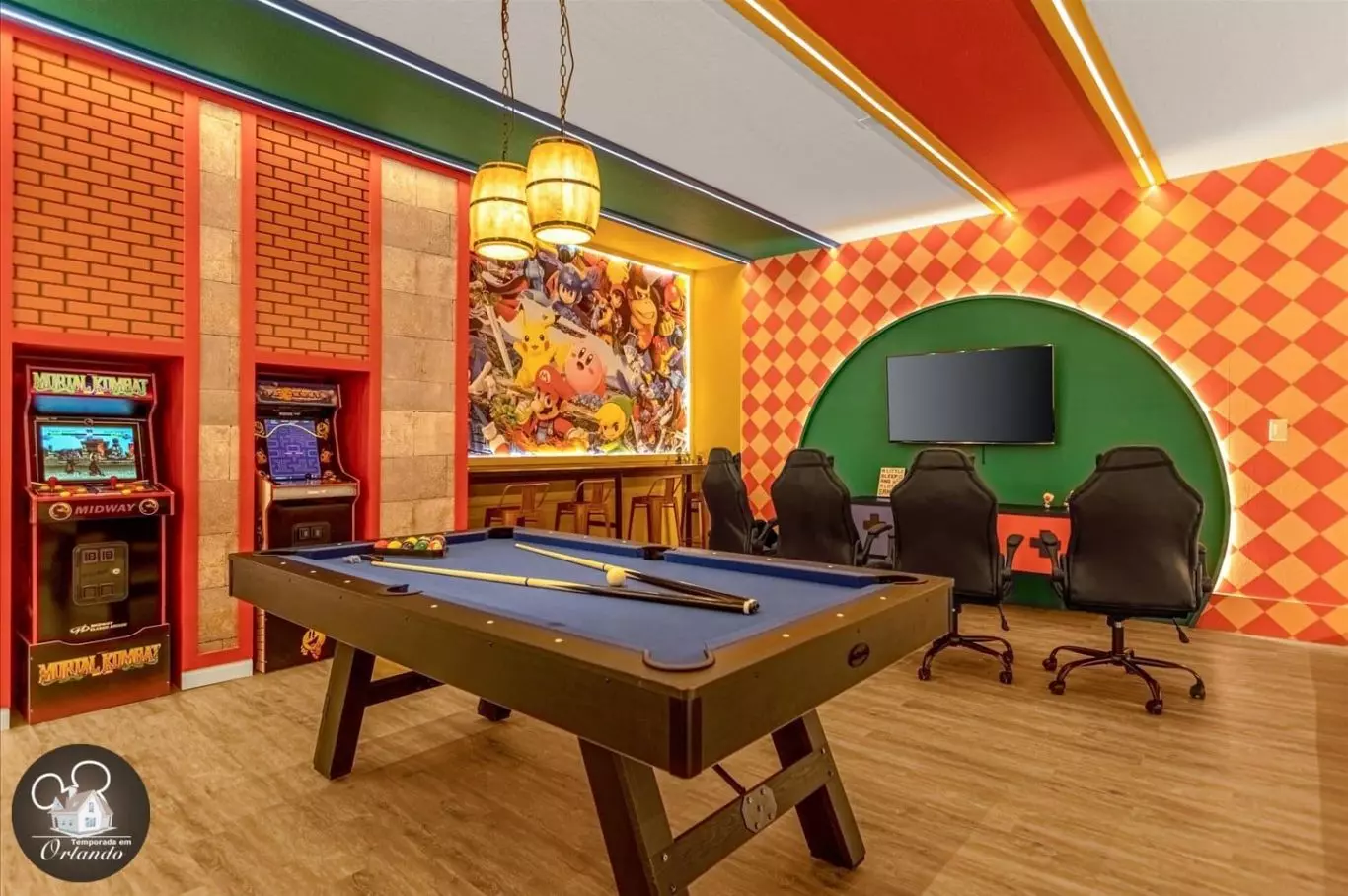 Mansão de luxo em Orlando com 15 suítes, piscina com jacuzzi e sala de jogos logo ao lado da Disney