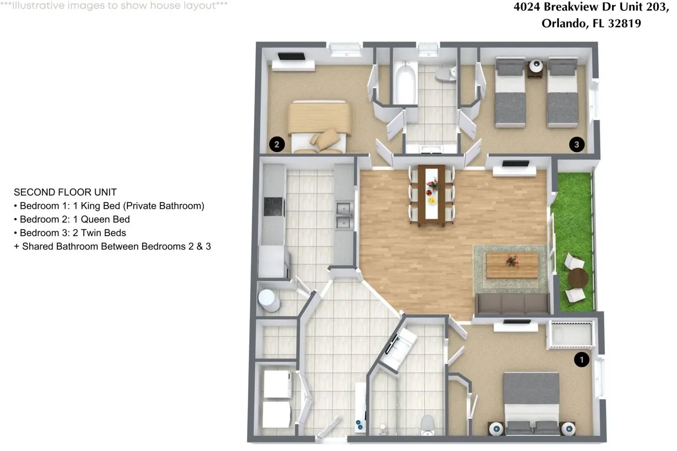 Este apartamento para temporada em Orlando é perfeito para quem deseja conforto e praticidade. Localizado a poucos minutos de carro dos pontos mais procurados, o apartamento oferece uma estadia completa para famílias e grupos de até sete pessoas.