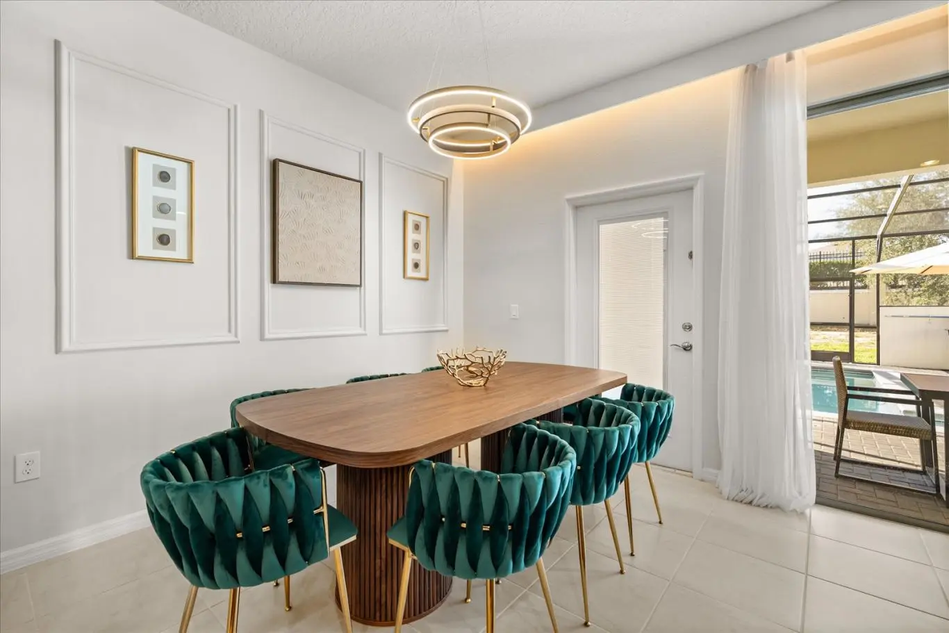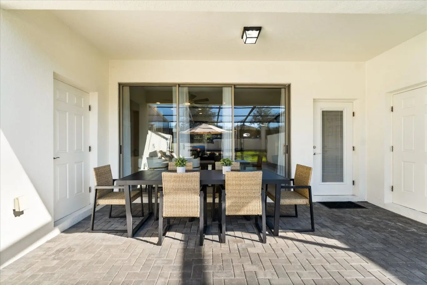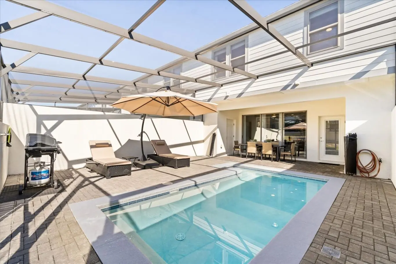 Nos fundos, a piscina privativa oferece um ambiente relaxante, perfeito para aproveitar o clima da Flórida com total privacidade e segurança.