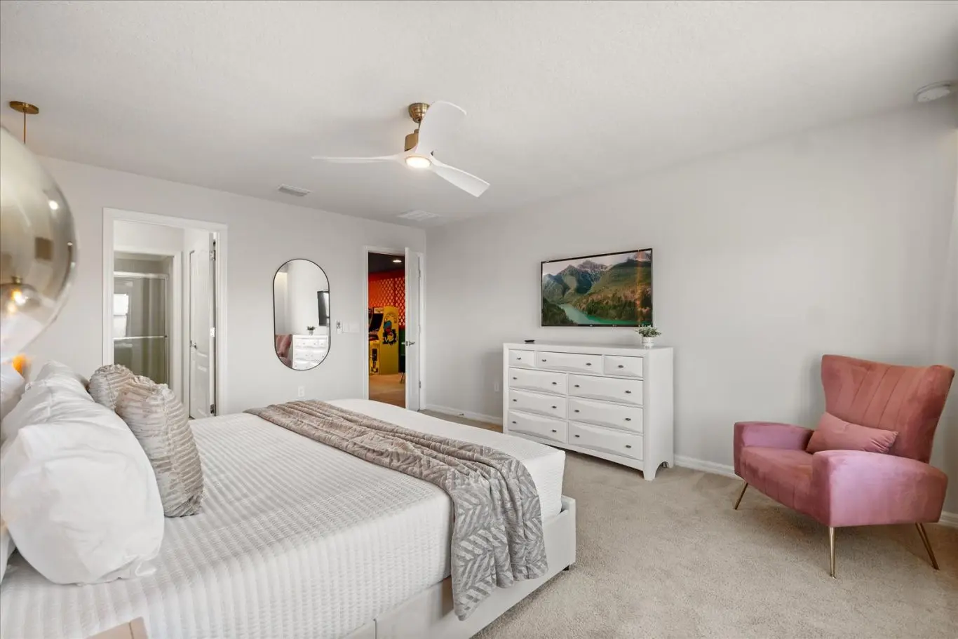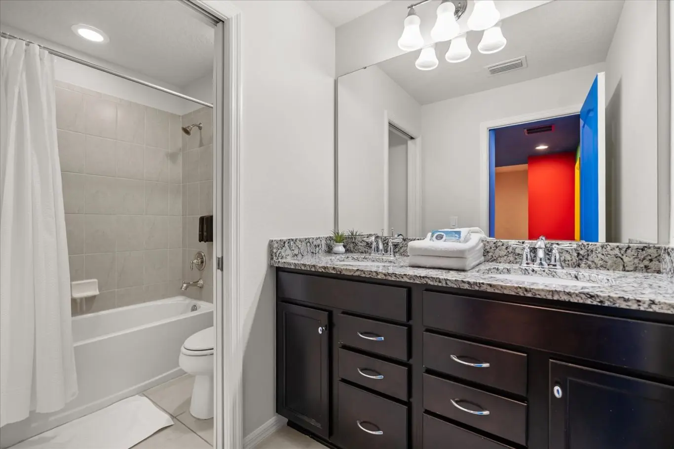 A casa era linda! A área era agradável e ficava a 20-30 minutos de todas as atrações. Fomos à Universal, Medieval Times e Wonder Works, e todos foram muito divertidos! Tínhamos acesso ao splash pad/mini parque aquático e ao rio preguiçoso, o que era ótimo para as crianças. O colchão do beliche e o colchão queen eram confortáveis. Adoramos ter o berço portátil e a cadeira alta disponíveis para uso. Ter um secador de cabelo e uma máquina de lavar e secar roupa foi uma vantagem. Nos divertimos muito! Havia muito espaço para nós, 5 adultos e 2 crianças. O preço era tão acessível e agradável. Definitivamente ficaríamos de novo!