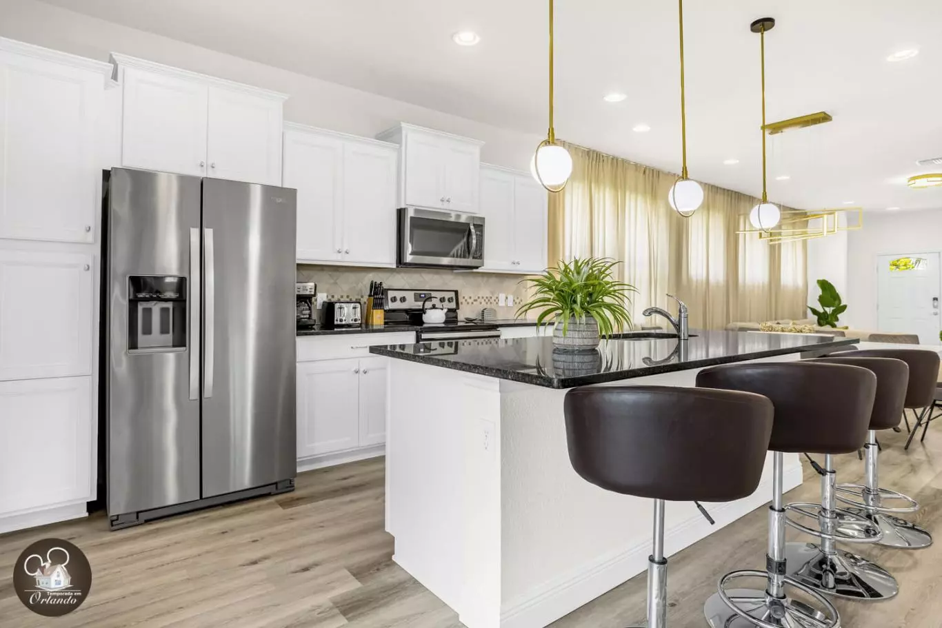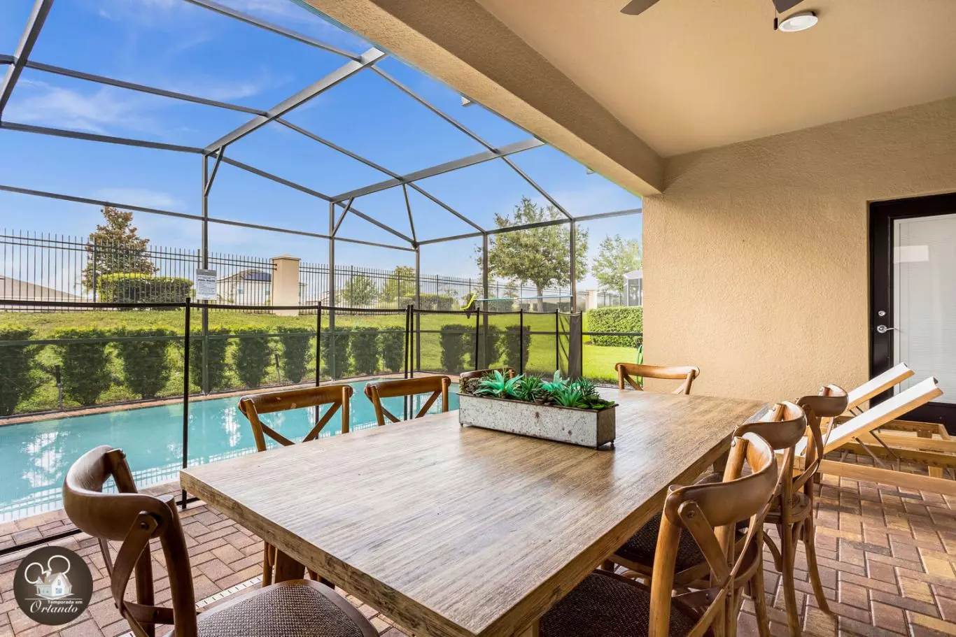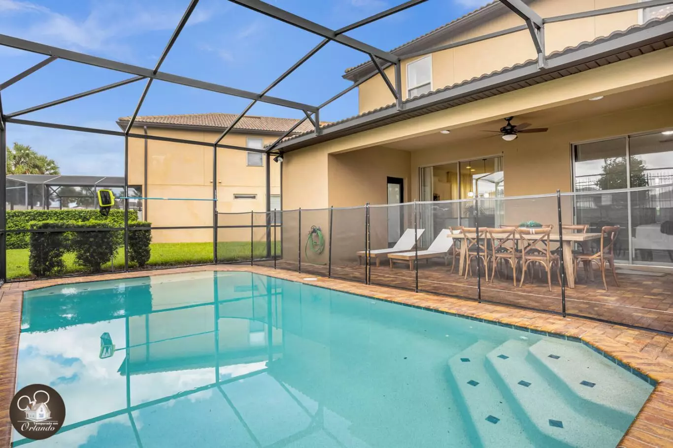 Nossa estadia foi incrível! Viemos para beber ao redor do mundo e a casa estava convenientemente localizada para os parques. Tudo estava limpo e havia muito espaço para o nosso grupo de 8 adultos. A piscina era privada e limpa, com uma área de estar coberta privativa que apreciamos. O bairro era seguro e protegido. Definitivamente reservaremos novamente para nossa viagem anual!